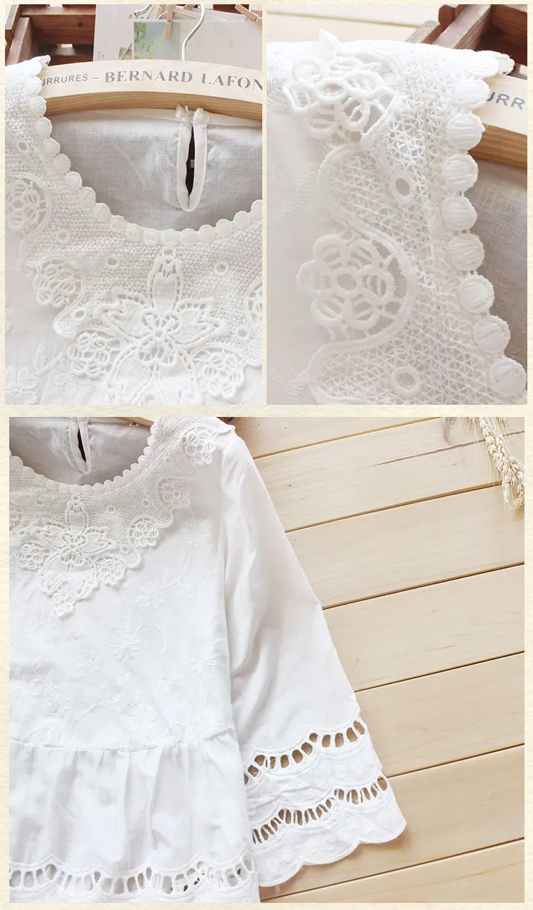 Mori Girl сладкий Hol1 из Свободная рубашка с рукавами для женщин крючком кружева хлопок белый женский сладкий принцесса дамы топы блузки AF772