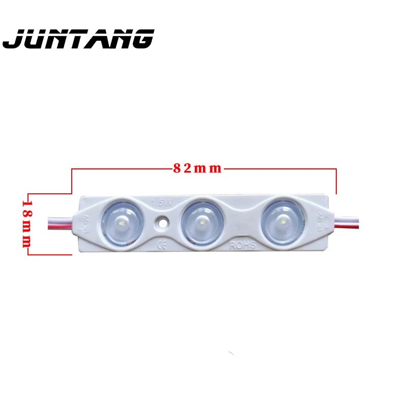 01. Модель продукта: JT-IM-J 02. Описание продукта: 3 лампы 2835 модуль впрыска 03. Светодиодный Тип: SMD 2835 Светодиодный 04. Доступные цвета: красный, желтый, синий, зеленый, белый 05. Угол освещения: 160 ° 06 、 количество светодиодный Тип лампы: 3 шт. 07. Светильник срок службы от источника энергии: 50000 часов 08. Рабочее напряжение: DC12V 09. Рабочая Мощность: 1,5 Вт 10. Режим привода: привод постоянного напряжения 11. Материал корпуса: ПВХ 12. Размер корпуса: 82*18*6 мм 13. Ip-рейтинг: IP67