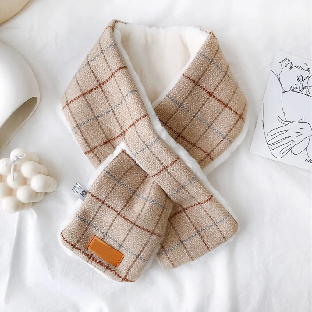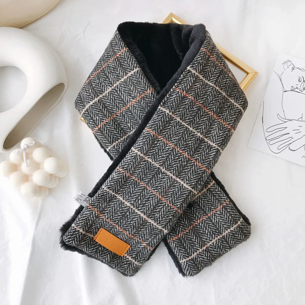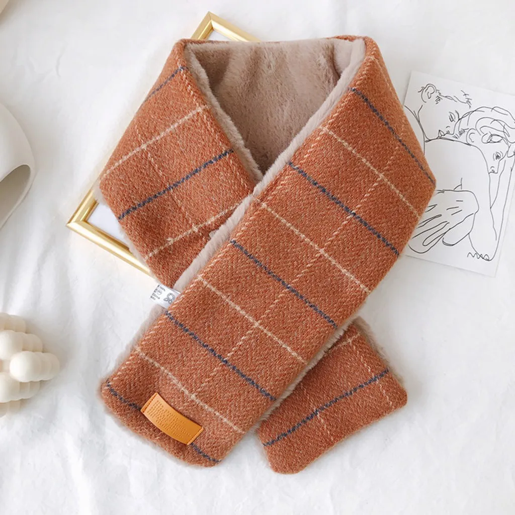 Женский модный зимний шарф из искусственного меха, теплая верхняя одежда с принтом в клетку