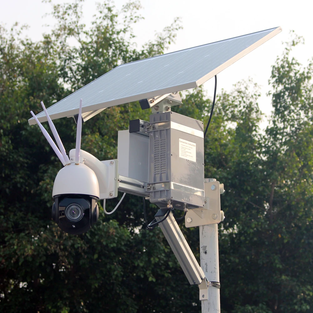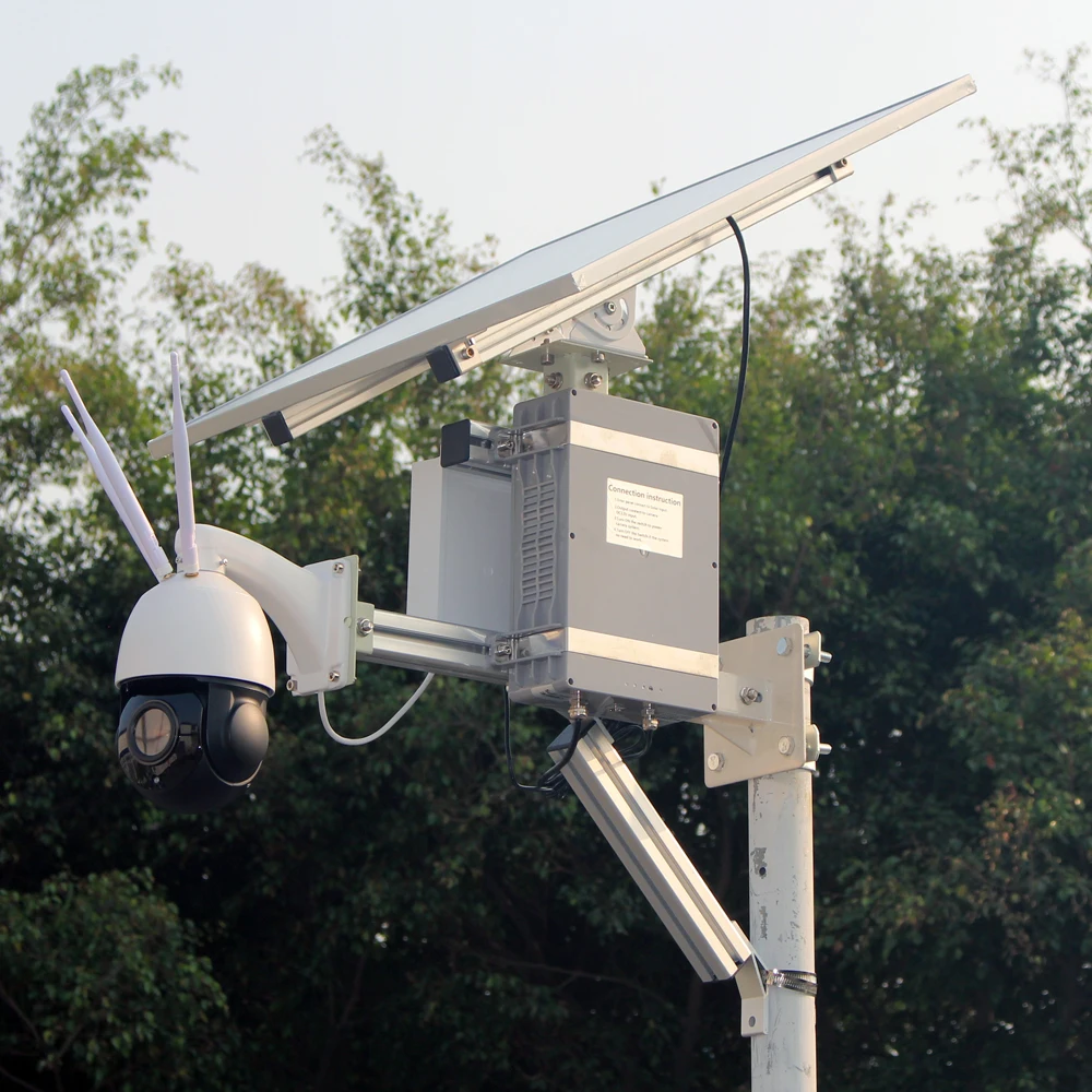 * Он может работать в любом месте без питания и Интернета.* Работает от солнечной энергии и подключается к сети 4G/3G.* Солнечный кронштейн из алюминиевого сплава, поддержка установки полюсов и стен* 4G/3G wifi ptz камера с картой записи, запись все время само по себе.* 80 Вт солнечная панель, алюминиевый сплав солнечный кронштейн и40AH литиевая батарея.