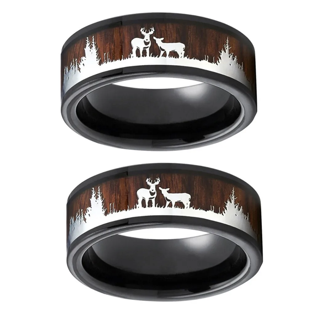 Черное кольцо дерево декор олень