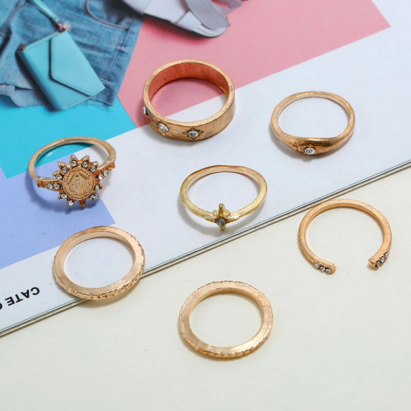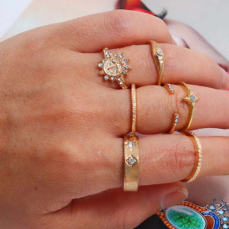 На фаланги бохо кольца для женщин аксессуары винтажные золотые звезды Стразы