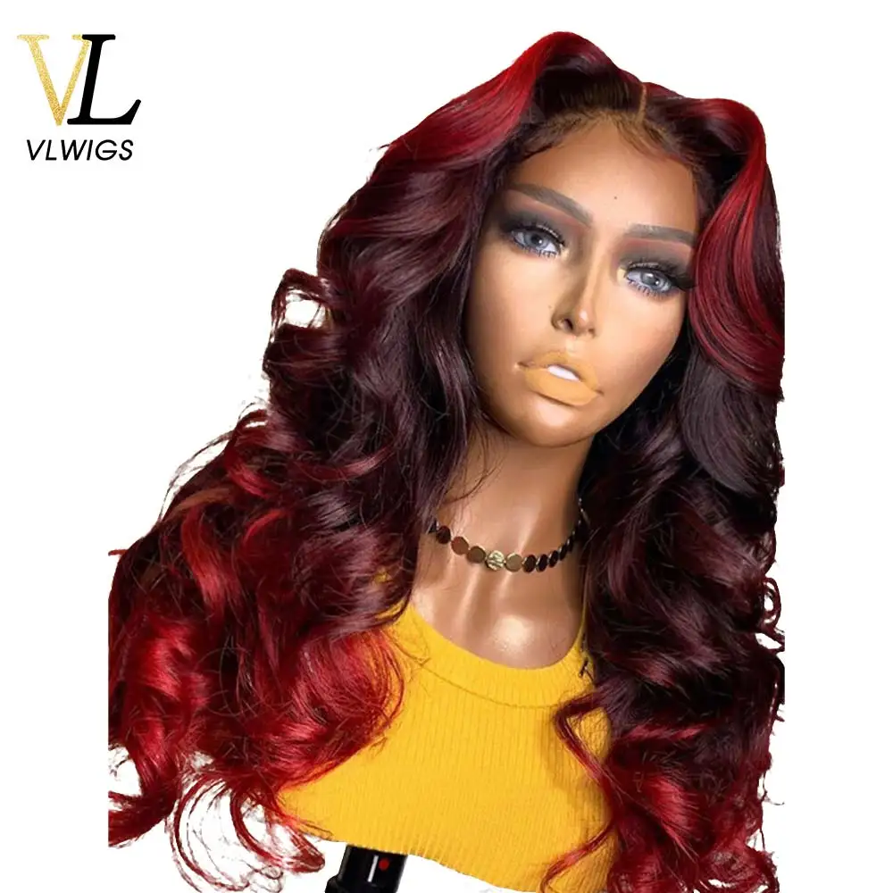 VLWIGS Омбре красная естественная волна бразильские бесклеевые человеческие волосы полный парик шнурка предварительно выщипанные волосы отбеленные узлы с детскими волосами VL04