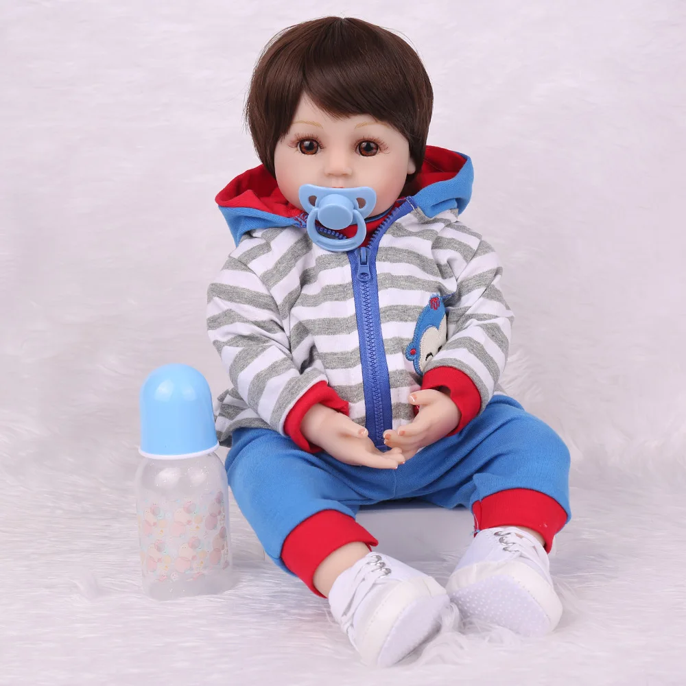 Бренд: KAYDORA Вес: прибл. Ткань для тела 1,1 кг/полный силиконовый корпус 1,4 кг. Не слишком тяжелый, но просто подходит для ваших детей, чтобы носить с собой руки и играть. Удобно держать под рукой даже в течение длительного времени. Размеры: прибл. 18 дюймов/48 см от головы до носка. Как и размер настоящего ребенка. Ваши дети никогда не будут чувствовать себя одинокими и бояться ночью с этой куклой. Материал: изготовлен из винила, очень мягкий, можно положить в воду. Наш материал-мягкий винил, прошел стандарт ЕС EN71, получил сертификацию INMETRO, соответствует или превышает требования безопасности ASTM F963, получить сертификат продукта для детей. Лицо: эта кукла имеет красивые расписанные вручную детали, нанесенные вручную ресницы, сияющие глаза и розовые щеки. Теплые и влажные губы выглядят естественными и мягкими, которые вы не можете не поцеловать. Эти детали делают этого ребенка очень похожим на настоящего ребенка. Корпус: полностью силиконовый корпус, очень мягкий на ощупь. Ваши дети могут принять ванну с ним. Морщинка на коже придает кукле необычайный вид и делает ее похожей на настоящего ребенка. Его конечности могут двигаться вперед и назад. Вы можете сделать любую осанку, такую как сидеть и лежать Посылка включает в себя: 1x Baby Doll 1x набор одежды 1x свидетельство о рождении 1x бутылочка для кормления 1x Магнитная соски-пустышки