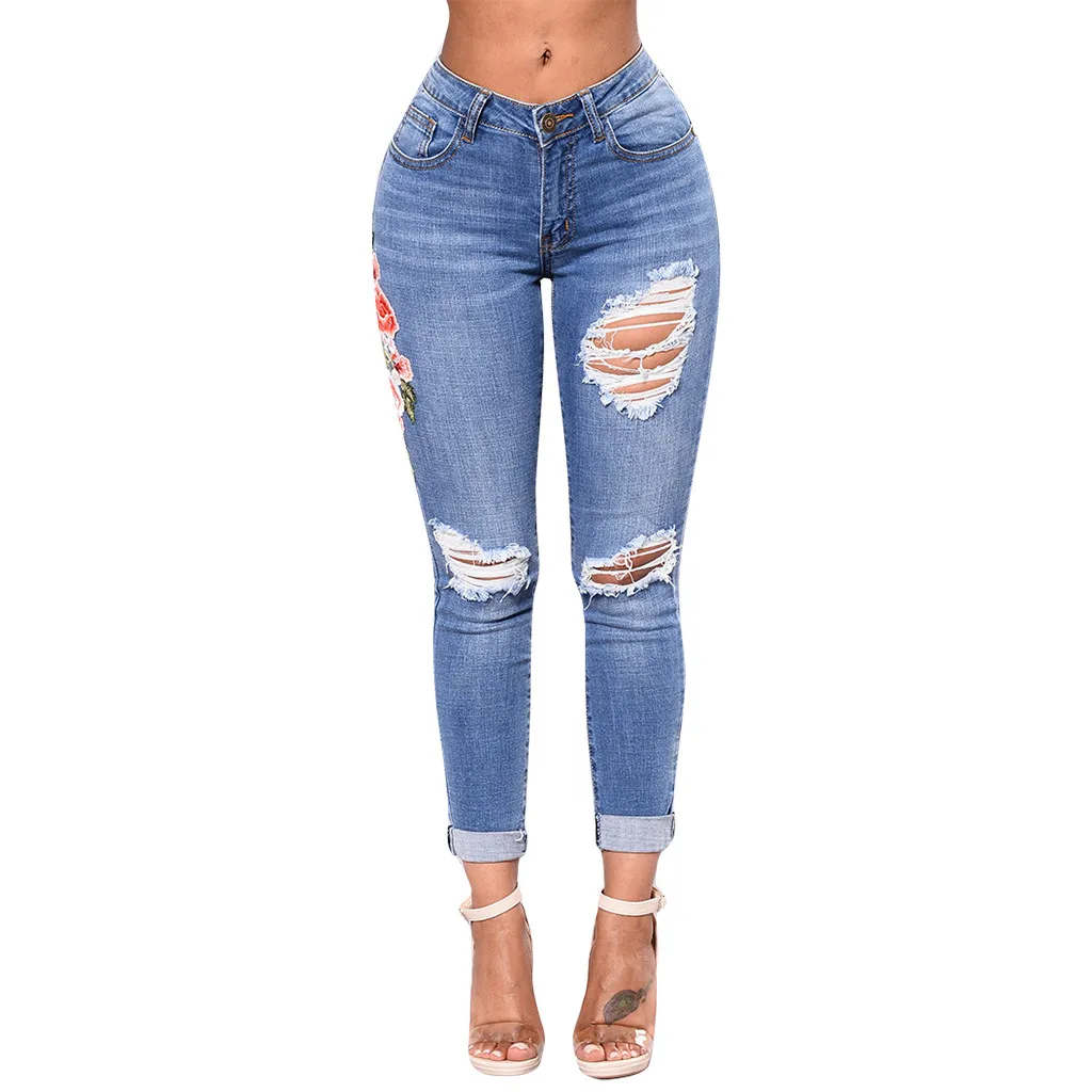 Женские эластичные джинсы с высокой талией и принтом, леггинсы облегающие брюки для фитнеса