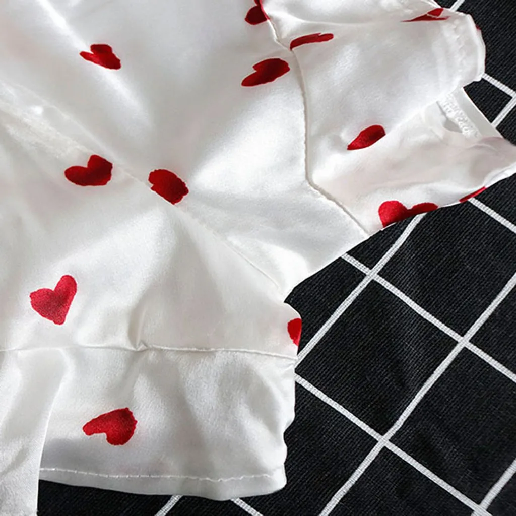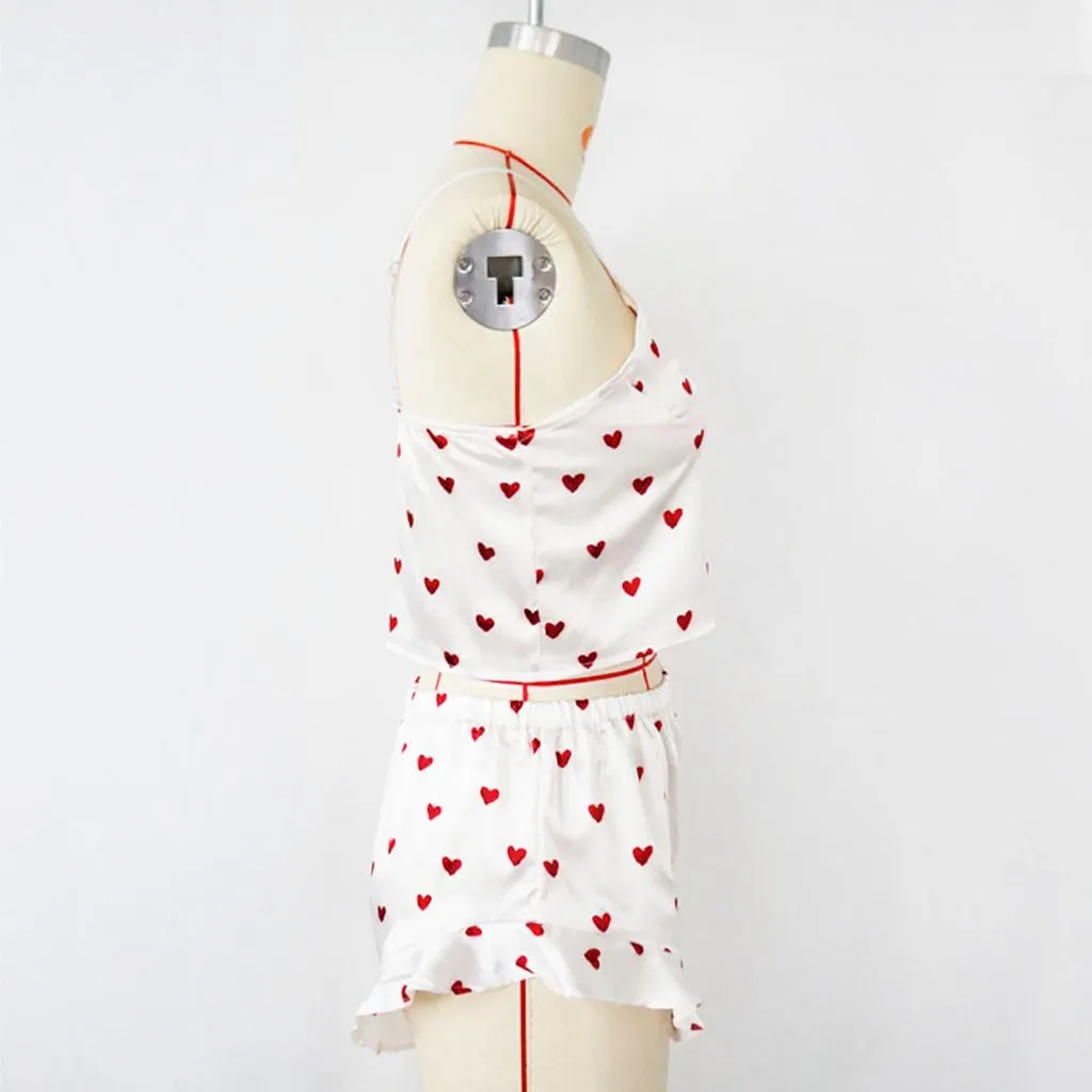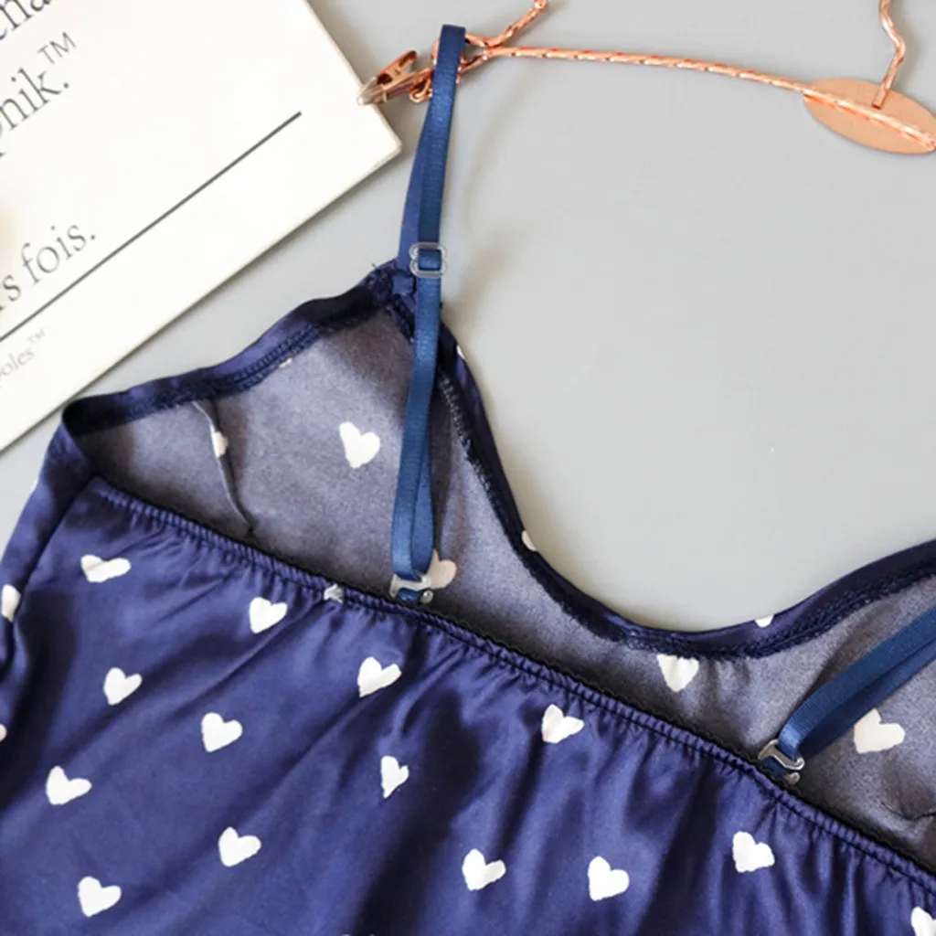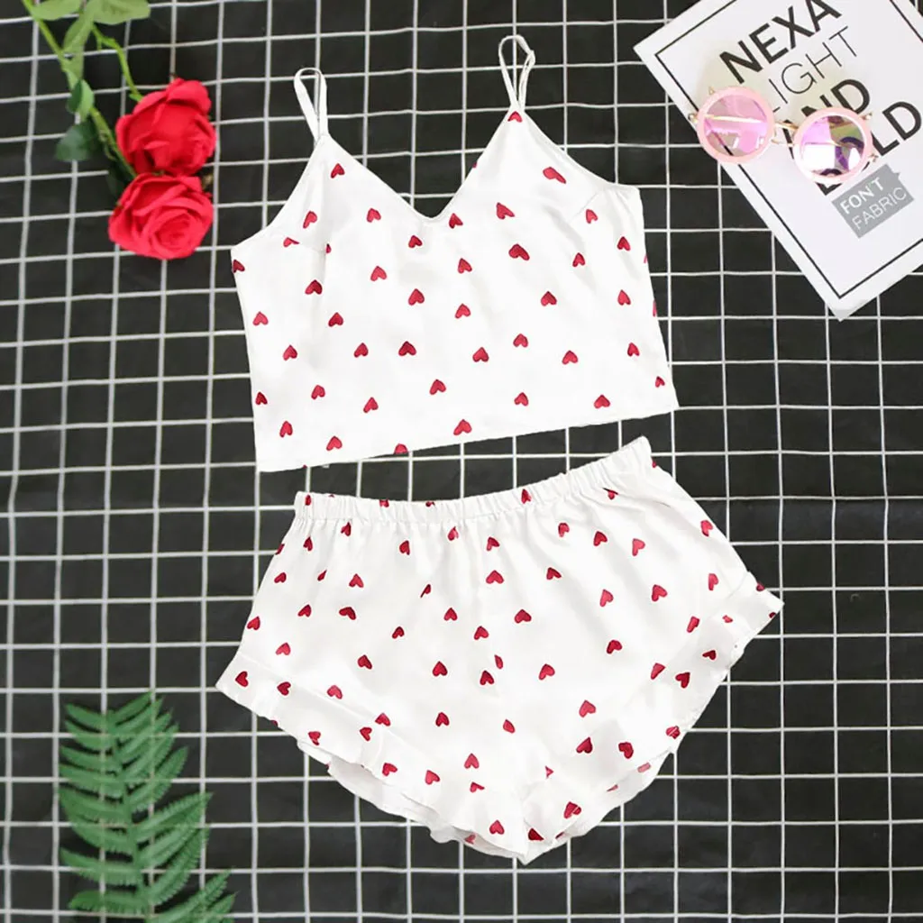 Женская атласная в форме сердца майка с принтом пижамы Нижнее белье-шорты набор