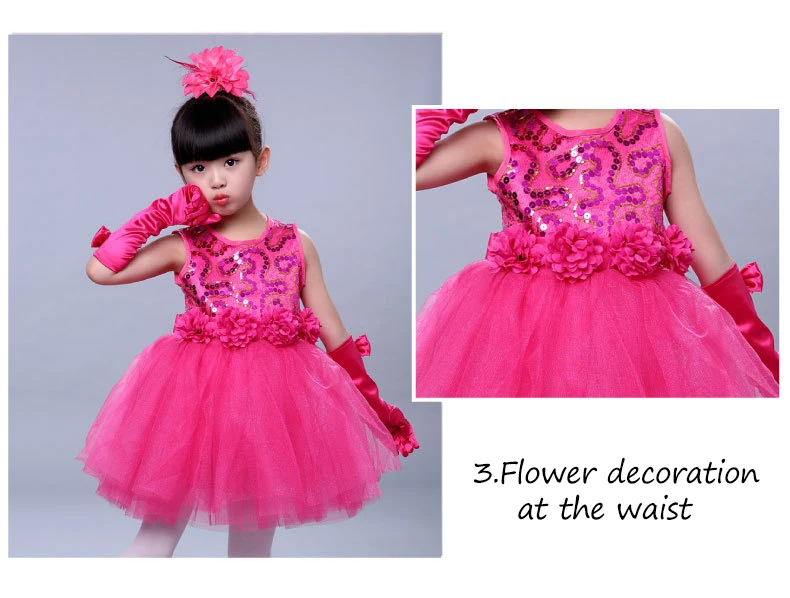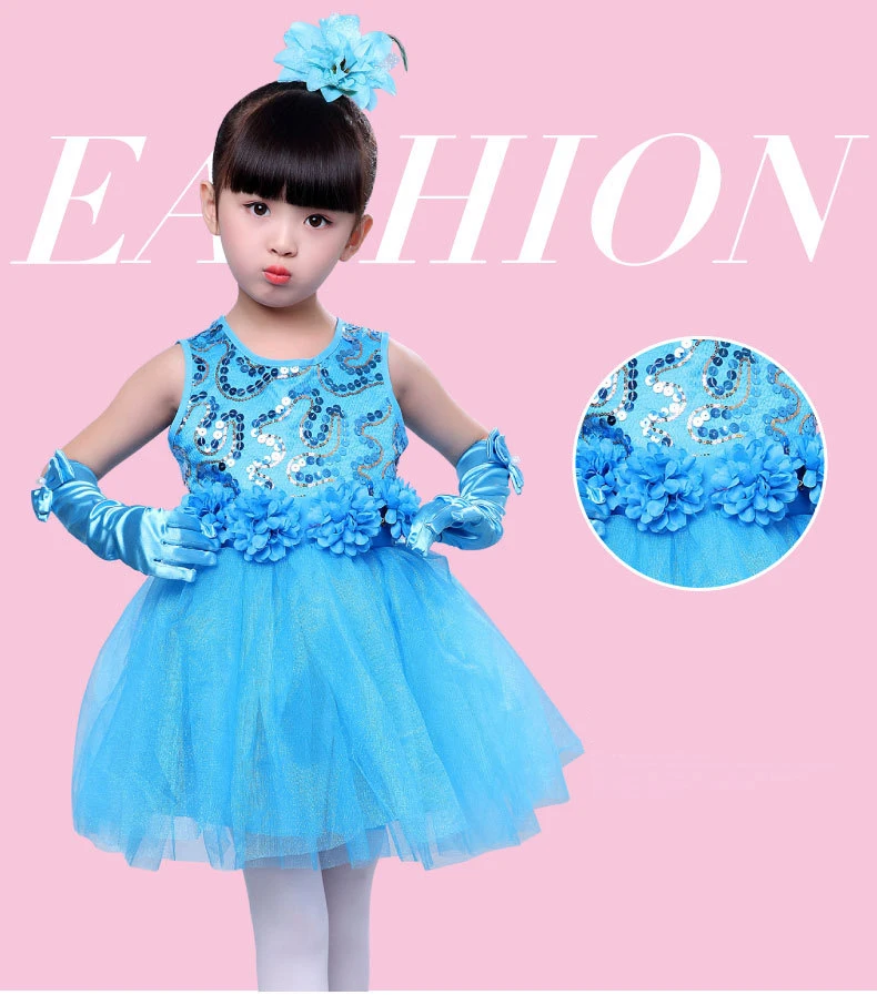 Детские платья с блестками для выступлений; Трикотажное платье принцессы; Танцевальная одежда для студентов; Танцевальная одежда для сцены; Юбка-пачка для девочек