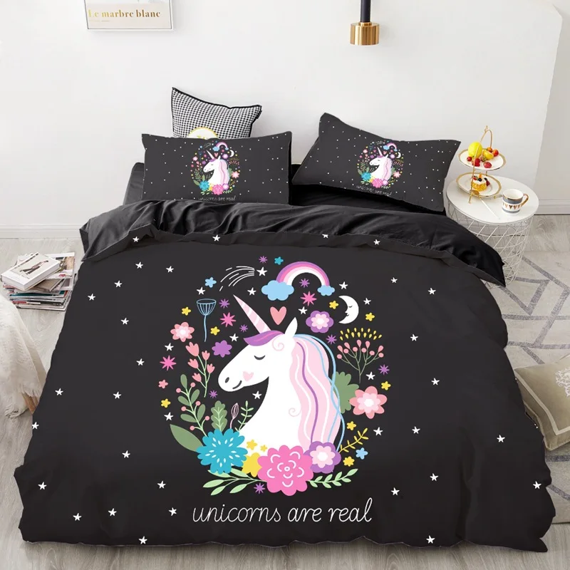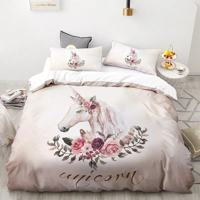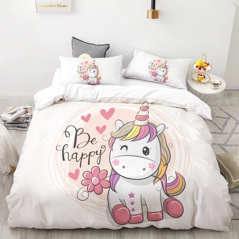 Denisroom, милое постельное белье с изображением единорога, комплект детской кровати с рисунком, одеяло, детская кровать, одеяла и пододеяльник, комплект XY09 #