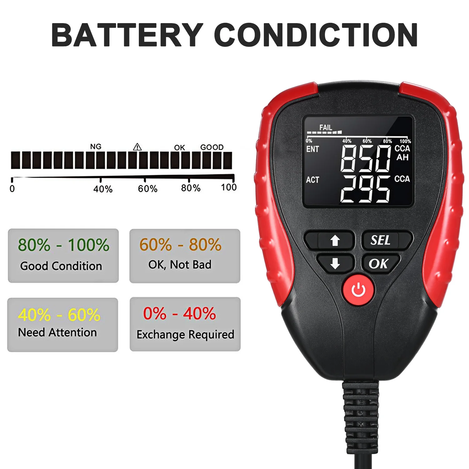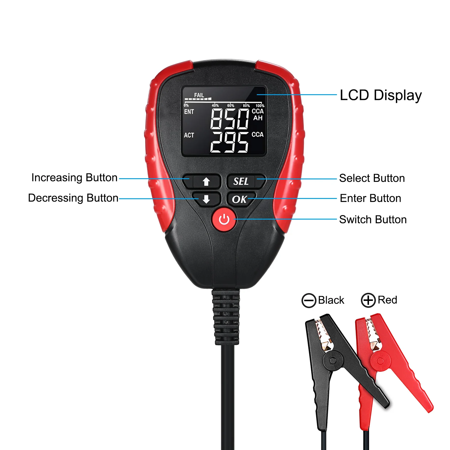 Широкий диапазон испытаний CCA (0 ~ 1995) и диапазон AH (0 ~ 199,5), обеспечивает большую гибкость при выборе батареи.
