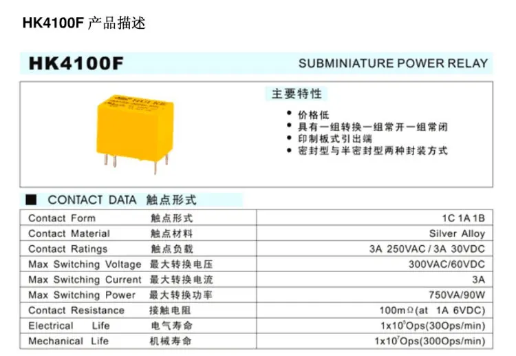HK4100F-DC3V-SHG HK4100F-DC5V-SHG HK4100F-DC9V-SHG HK4100F-DC12V-SHG HK4100F-DC24V-SHG Низкочастотное реле сигнала 3V 5V 9V 12V 24V DIP-6 3A 250VAC/30VDC