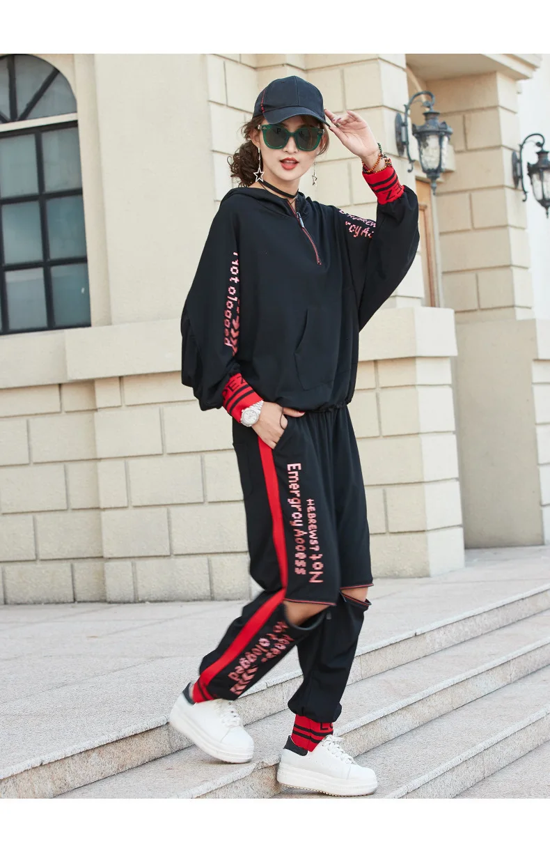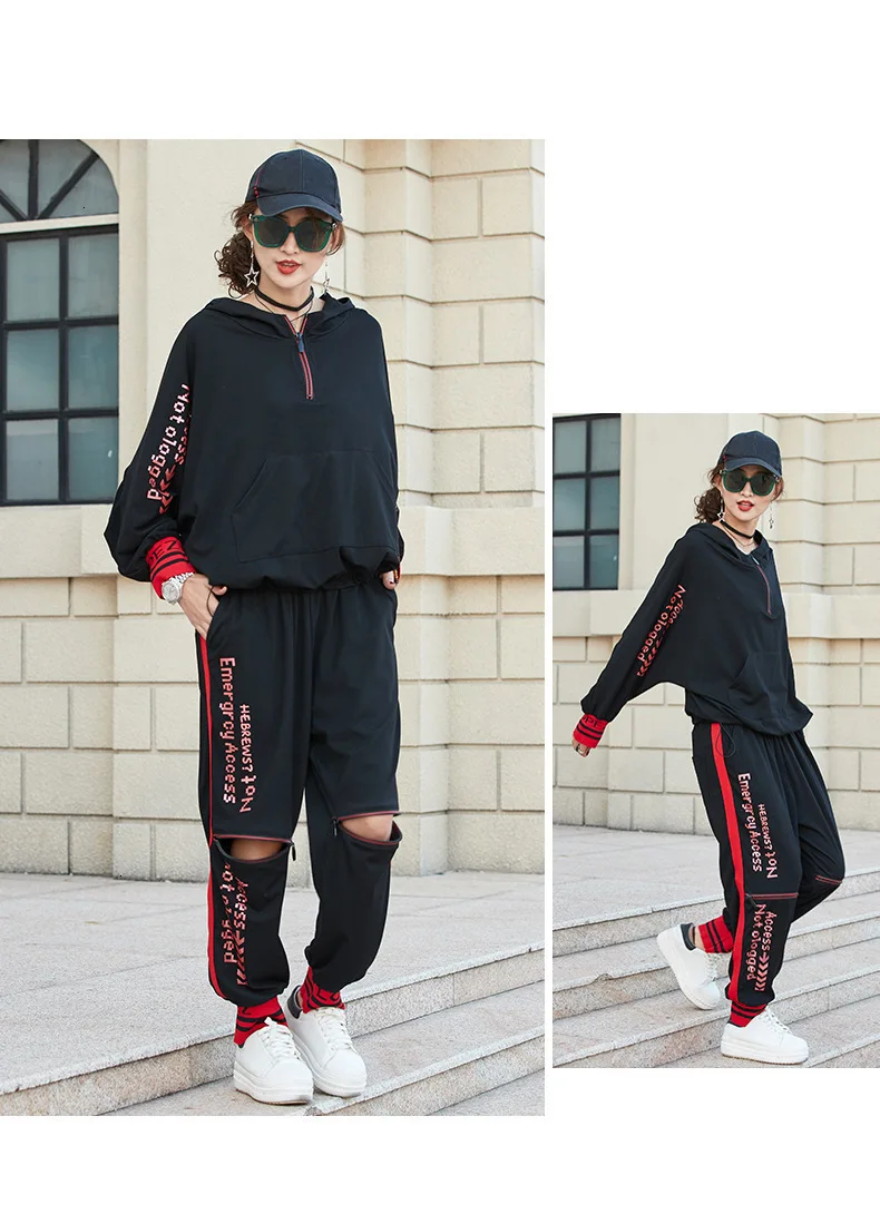 Роскошный комплект из 2 предметов, худи в стиле панк, шаровары