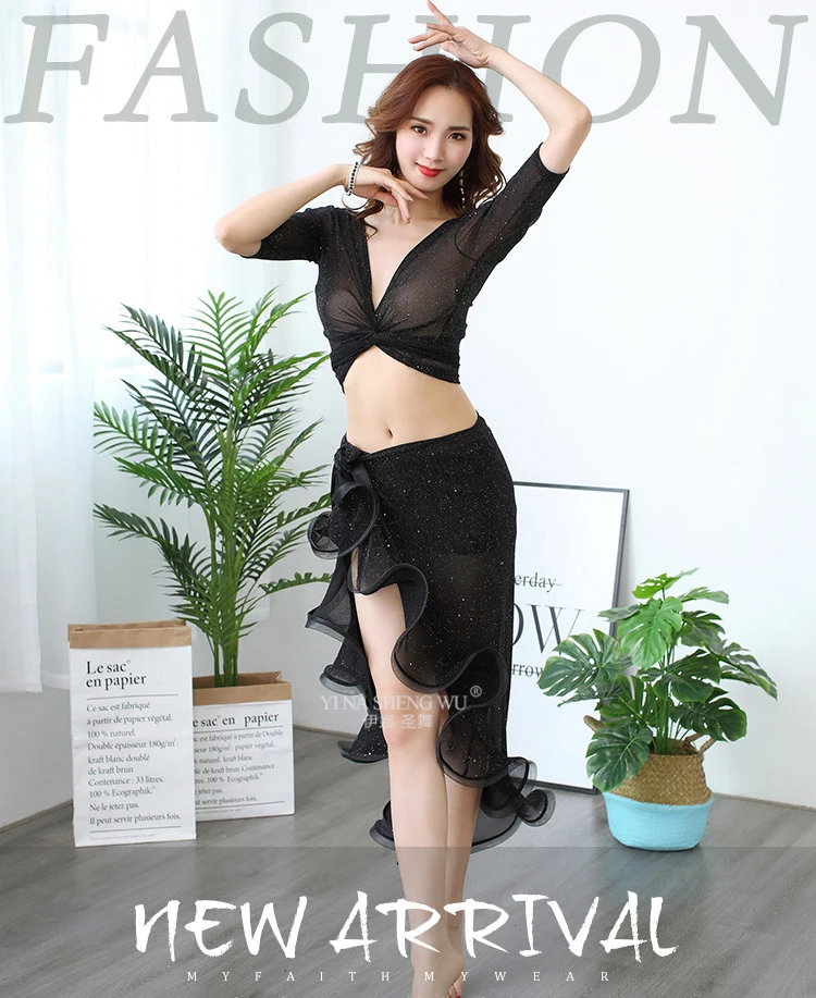 Юбка для танца живота, сексуальный Серебряный сетчатый прозрачный костюм, женский тренировочный костюм, Одежда для танцев, одежда для восточных танцев, Длинная накидка на бедро