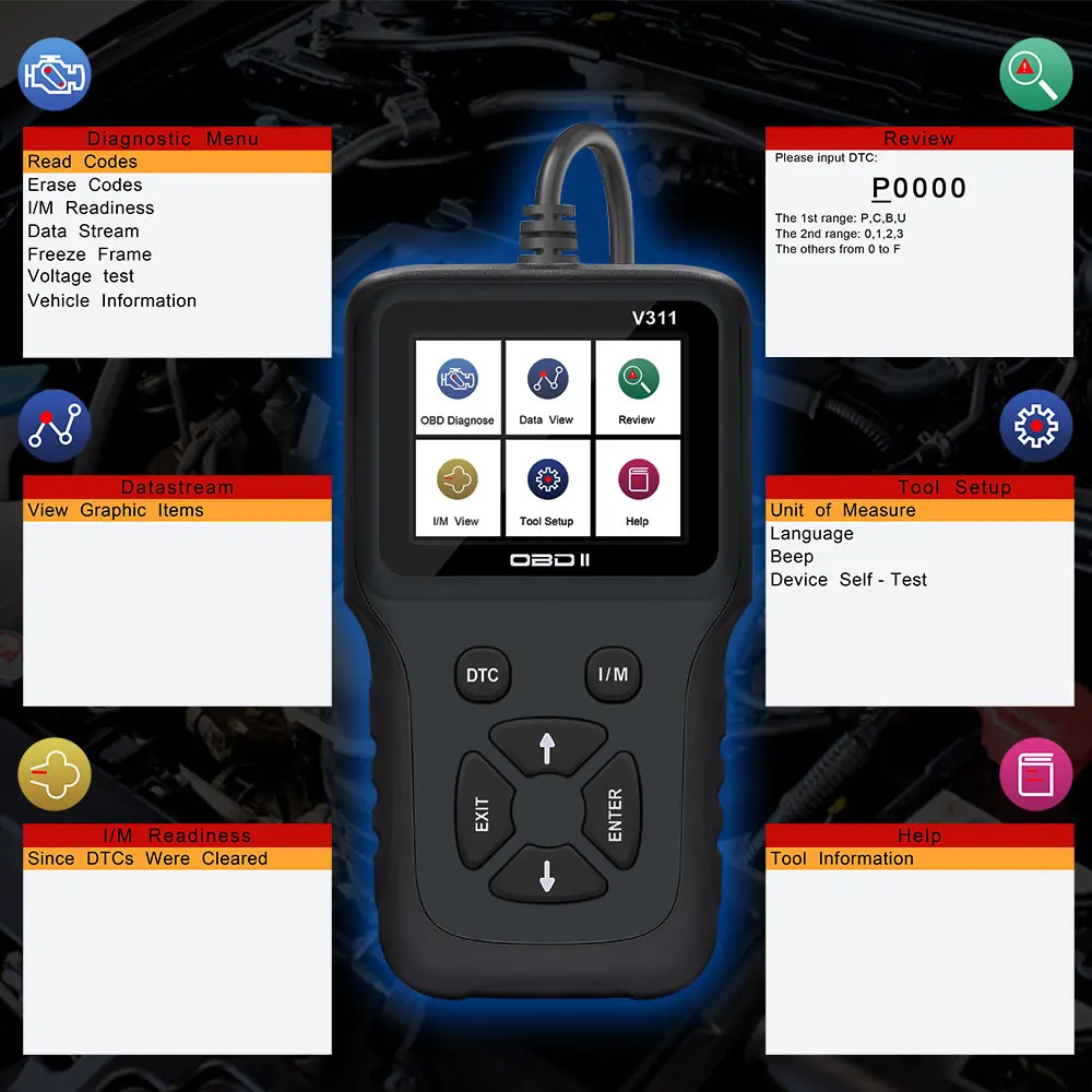 V311 полный OBD2 сканер OBD 2 считыватель кодов двигателя v311 автомобильный диагностический инструмент диагностика неисправностей PK CR319 AD310 ELM327 сканер инструмент