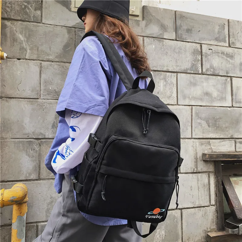 Винтажный черный школьный рюкзак FengDong 3 шт./компл. холщовый для девочек детская