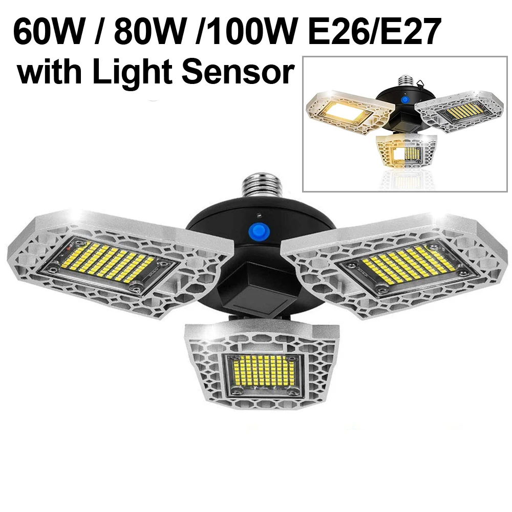 Деформируемый светодиодный светильник для гаража s 7200LM-12000LM 60 Вт-100 Вт Ультра-яркий IP65 потолочный светильник лампа для гаражной мастерской склад сарай с устойчивым и сумерками до рассвета светильник