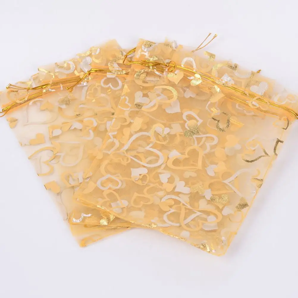 Подарочные сумки из органзы с узором в виде сердца, подарочные сумки на шнурке, подарочные сумки для хранения конфет, сумки для свадебной вечеринки