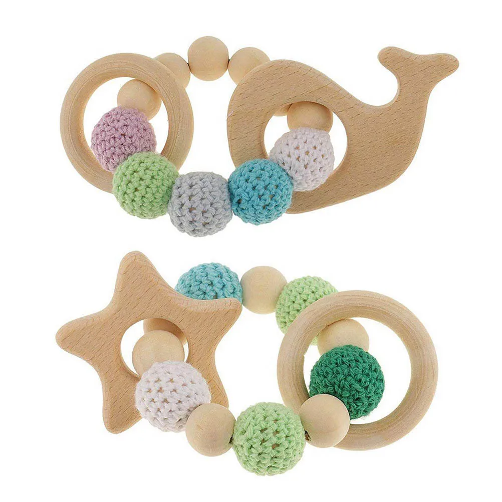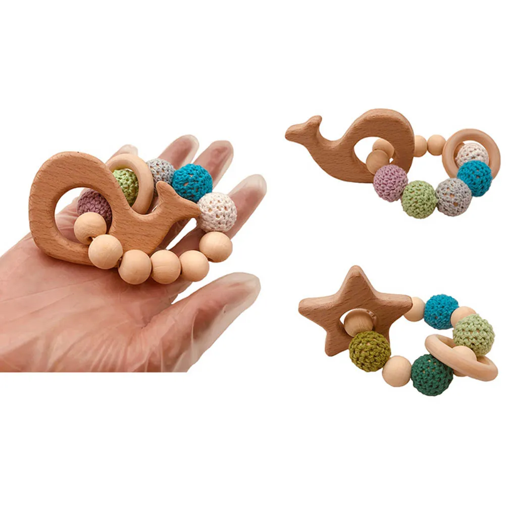 Деревянный Прорезыватель детский браслет ювелирные изделия в форме животных Прорезыватель для зубов органический деревянный силиконовый бисер детская коляска-погремушка