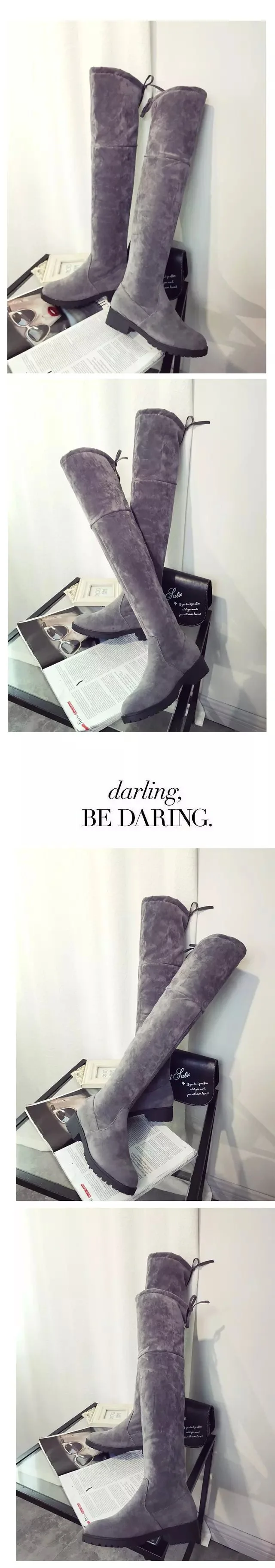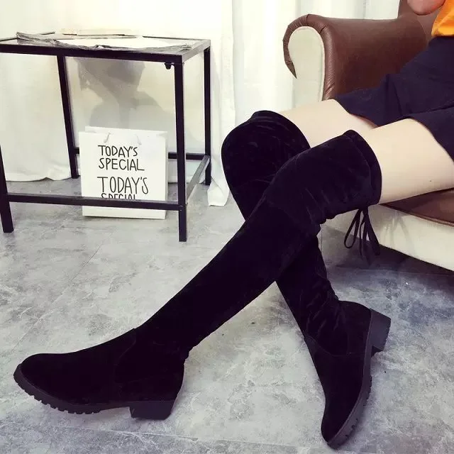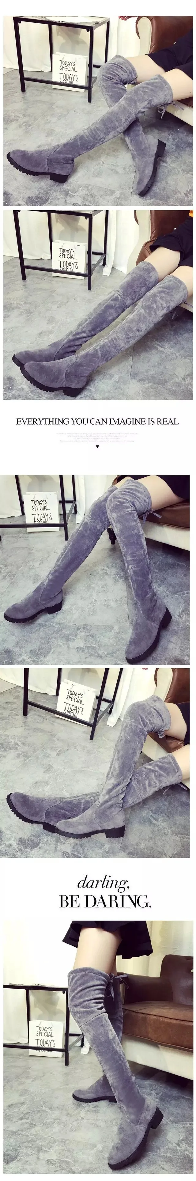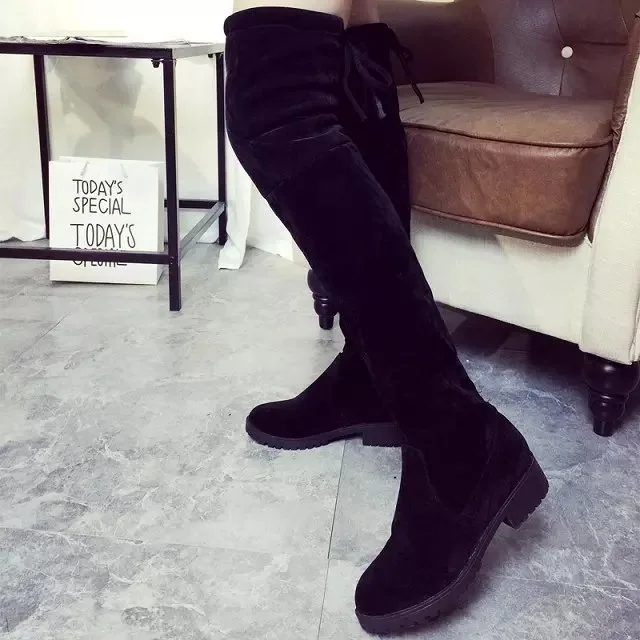 Новинка женские повседневные Сапоги выше колена зимние туфли лодочки с круглым