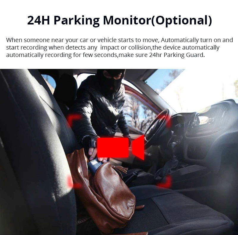 Захват широкоугольного обзора на 4,140 градусов. Безопасная парковка. 24-часовой монитор парковки (опционально), если вам нужна эта функция, вам нужно добавить кабель преобразования, он не включен.