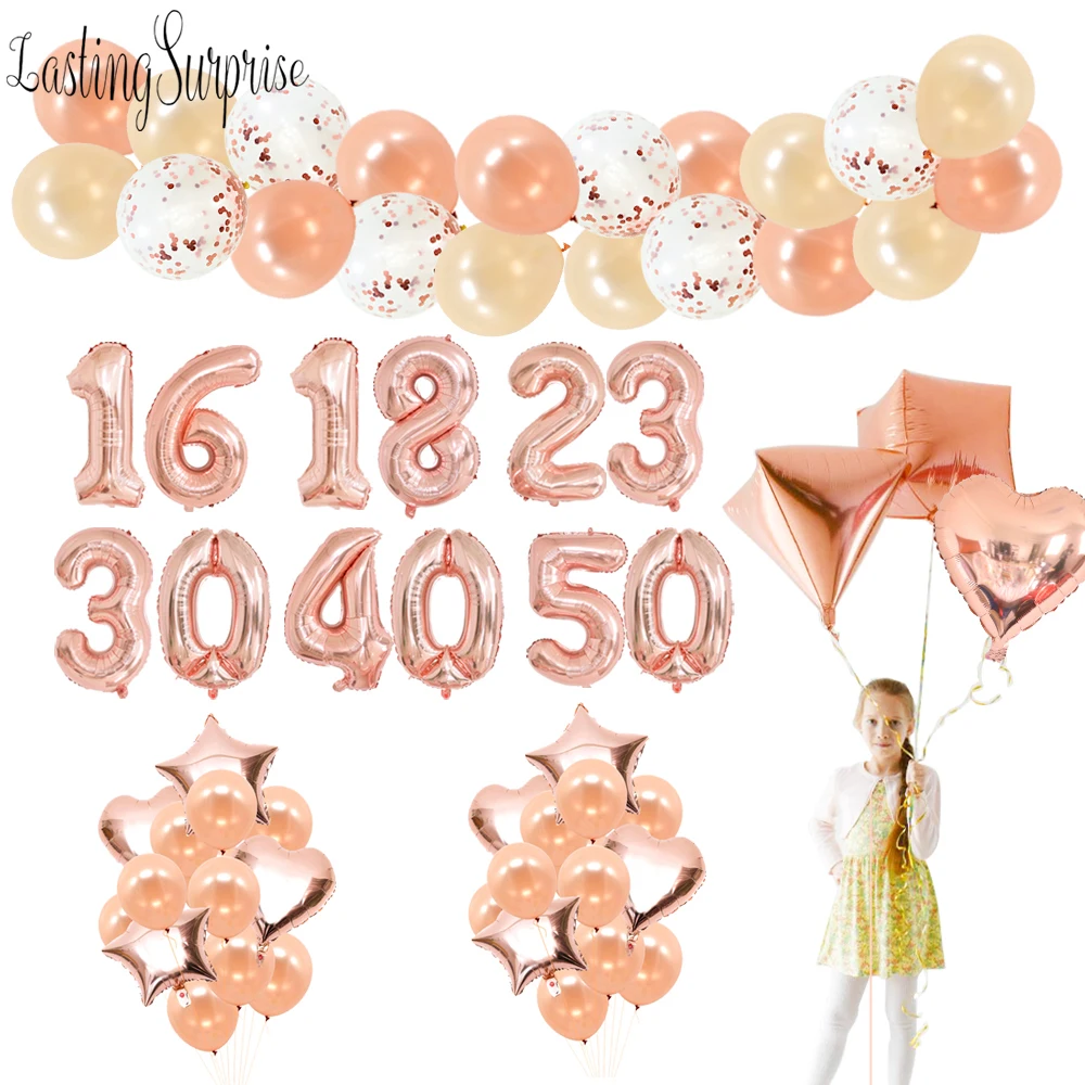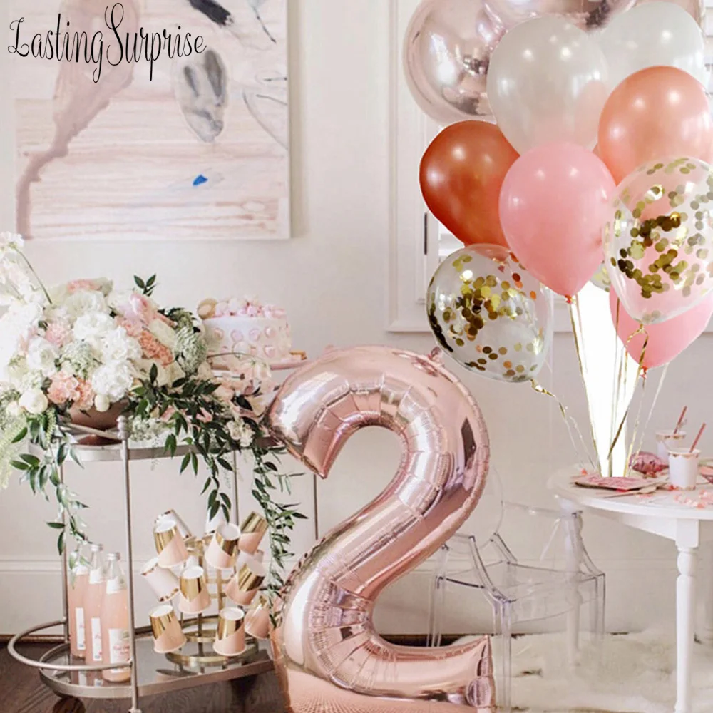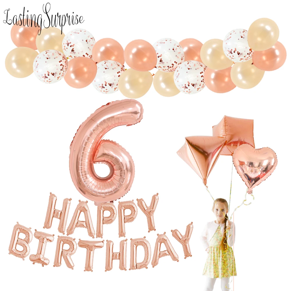 Розовые золотые воздушные шары для свадьбы, дня рождения, вечеринки, фольгированные буквы «С Днем Рождения», воздушные шары для детского дня рождения, юбилейные вечерние украшения