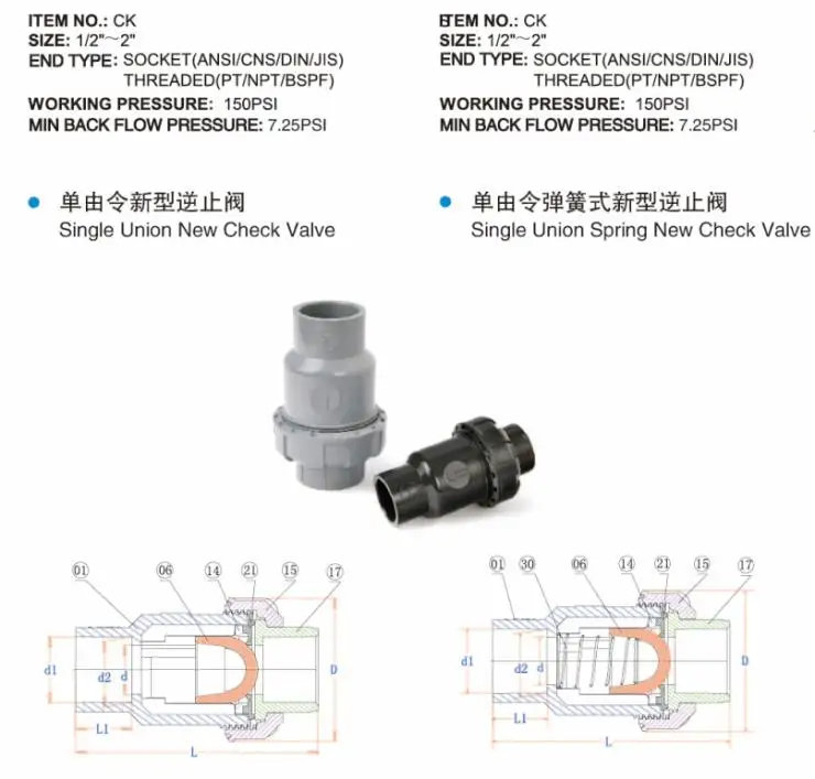 ANSI 1/2 "(21,34 мм) Внутренний диаметр обратный клапан пластиковый UPVC невозвратное значение водостопа соединители трубы полива воды ПВХ соединение трубы