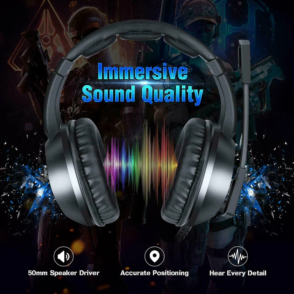 【Cool светодиодный светильник С классическим чистым черным и элегантным стилем, наушники Подходит как для мужчин, так и для женщин. Крутой дышащий светодиодный светильник Эффект с 7 автоматически меняющимися цветами значительно улучшает игру Атмосфера, вы будете чувствовать себя более захватывающими игровыми сценами. Примечание: USB Порт предназначен только для светодиодный свет.