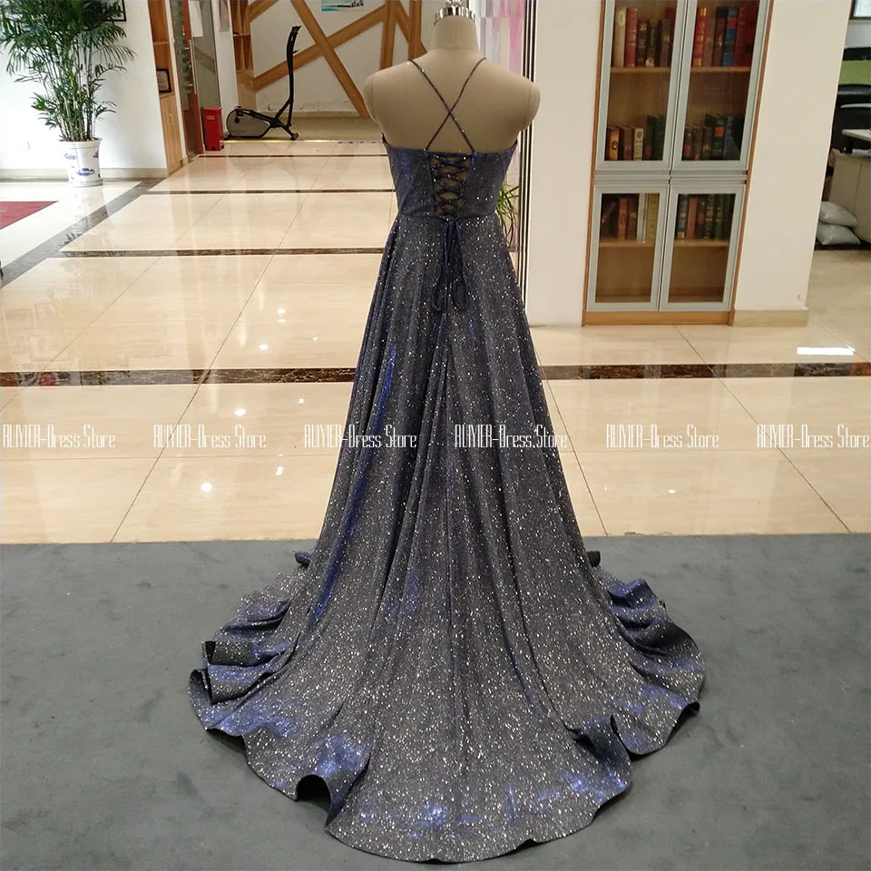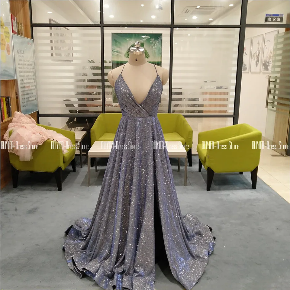 Голубые сверкающие платья для выпускного вечера с v-образным вырезом 2020 |