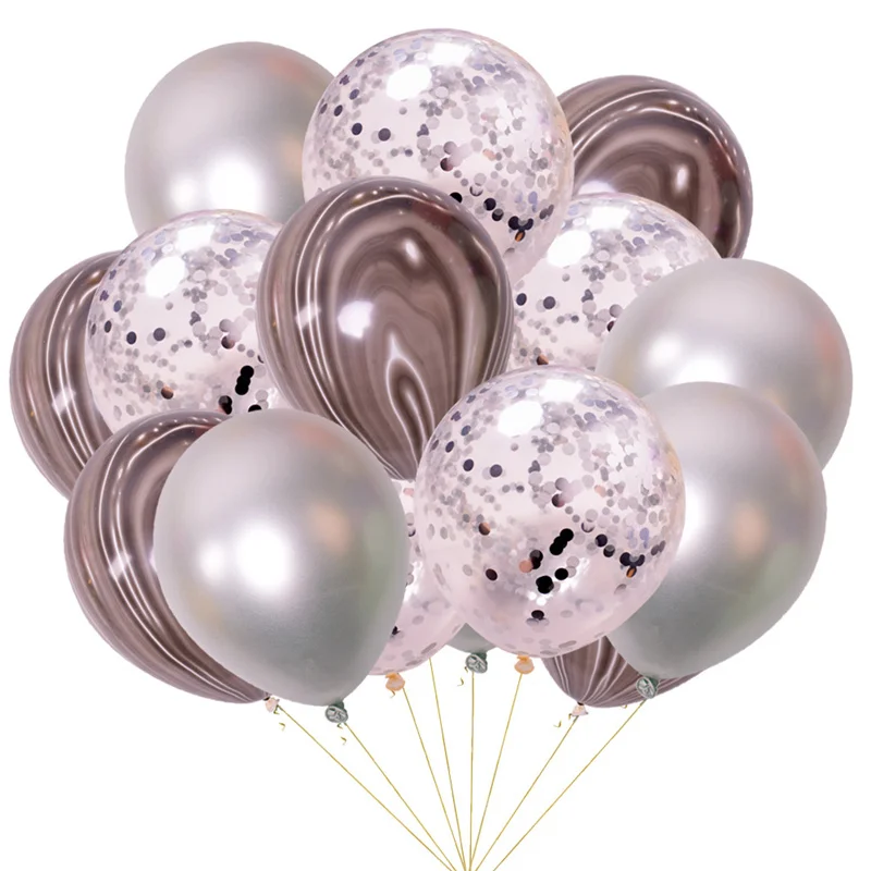 15 шт.: 5 воздушные шары Цвета Агата + 5 металлических шаров + 5 блесток