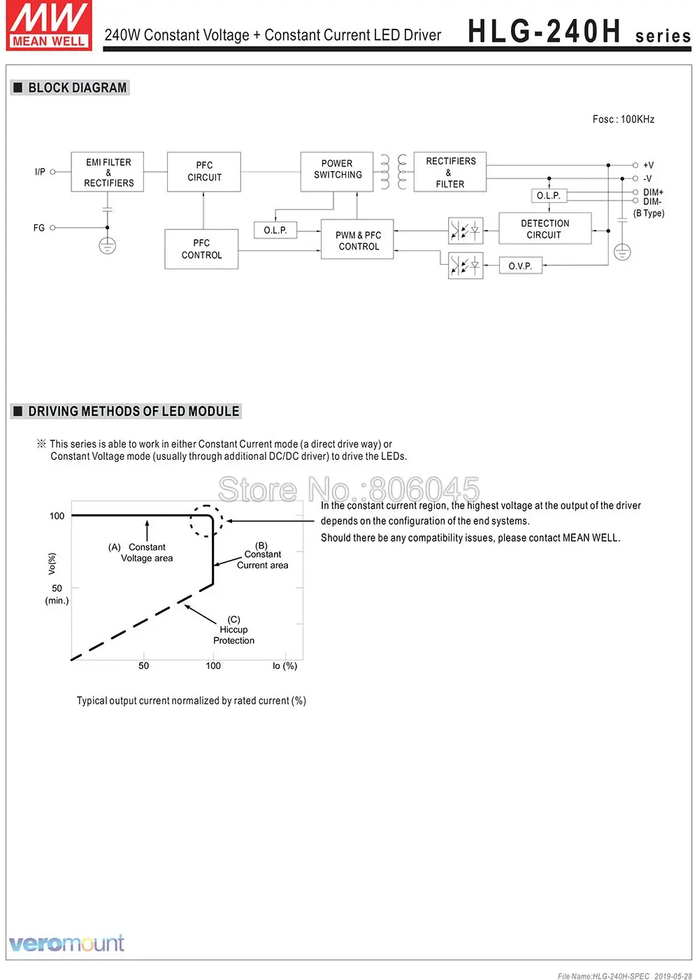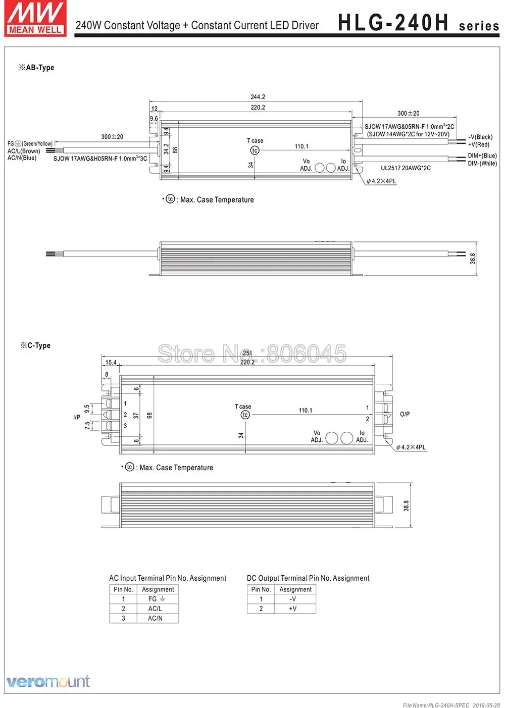HLG-240H-C1400B Meanwell Driver (Макс.250,6 Вт):