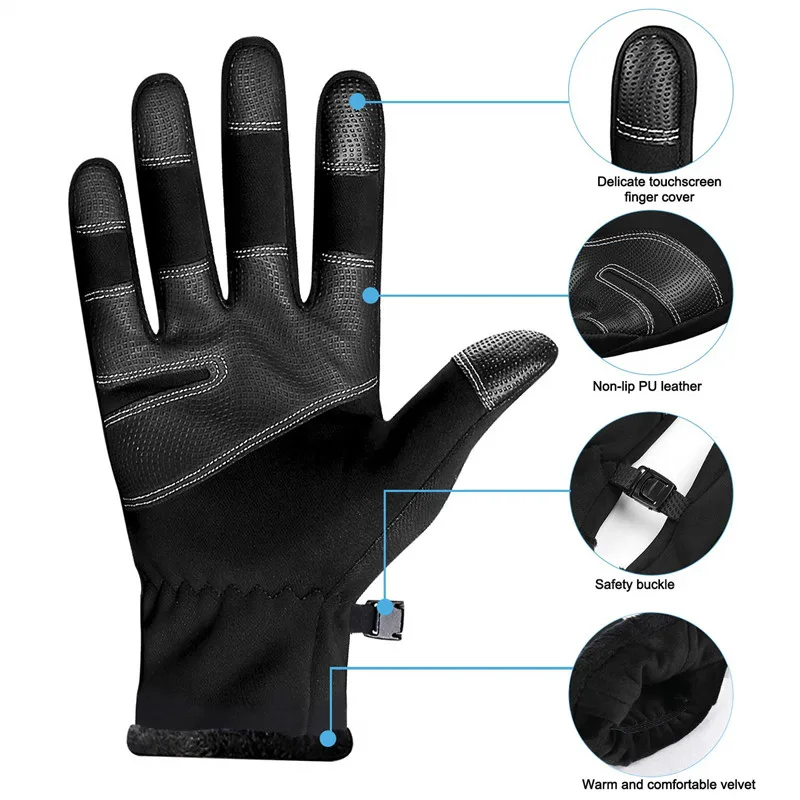 ❄Защита от снега, водонепроницаемость и защита от ветра -Наши зимние перчатки полностью закрывают пальцы, используя обновленный водонепроницаемый материал и встроенную флисовую подкладку. Руки можно держать в тепле во время бега или езды на холодном ветре. ❄Модернизированный застежка-молния -Задняя часть легких беговых перчаток имеет улучшенную бесшовную водонепроницаемую молнию. Более прочный, даже в дождливый день, не беспокойтесь о том, что дождь погружен в перчатки внутри. Вы можете настроить размеры, чтобы удобно облегать руки.