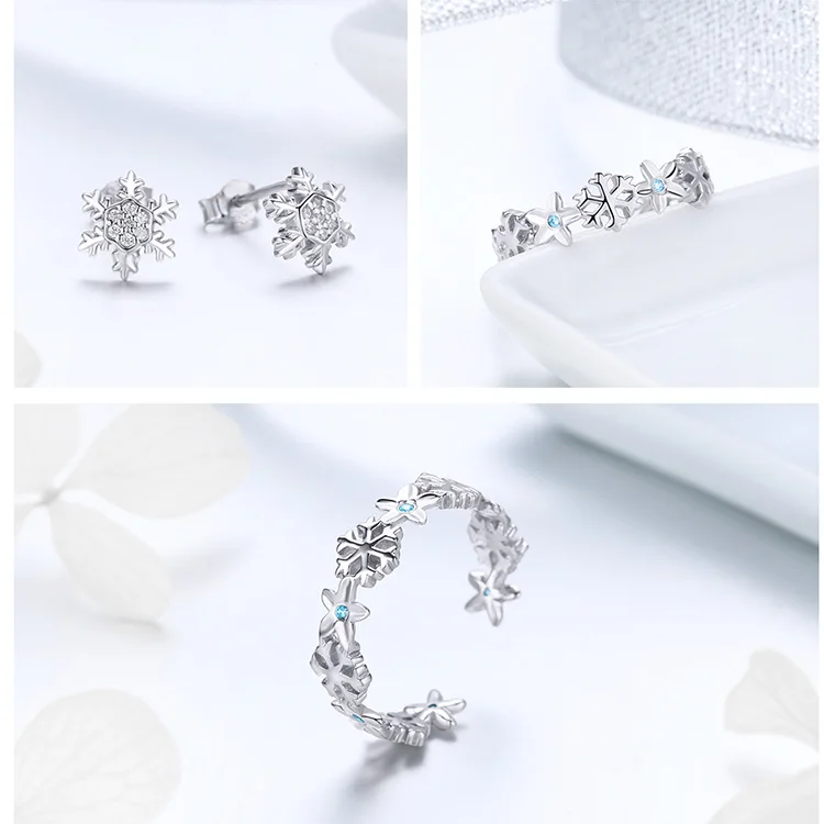 2019 модная зимняя коллекция подарки браслеты со снежинками и кольца Ювелирные наборы 925 пробы серебро Сделай Сам День святого Валентина для женщин