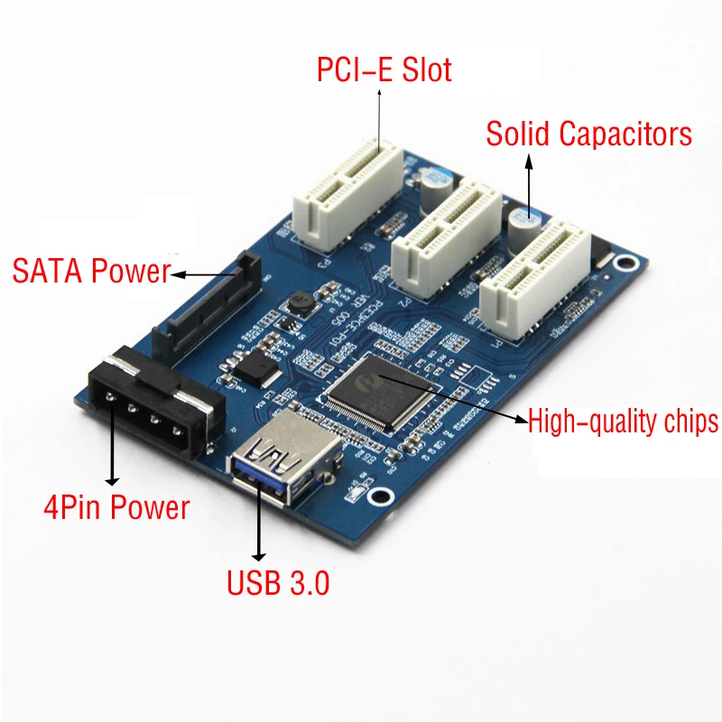 1 слот PCI-E 1X на 3 слота 1X карта riser с высокоскоростным кабелем USB 3,0.