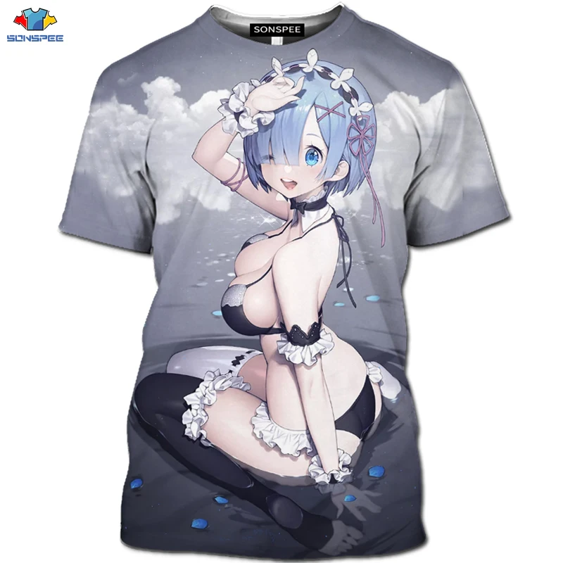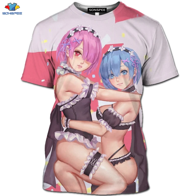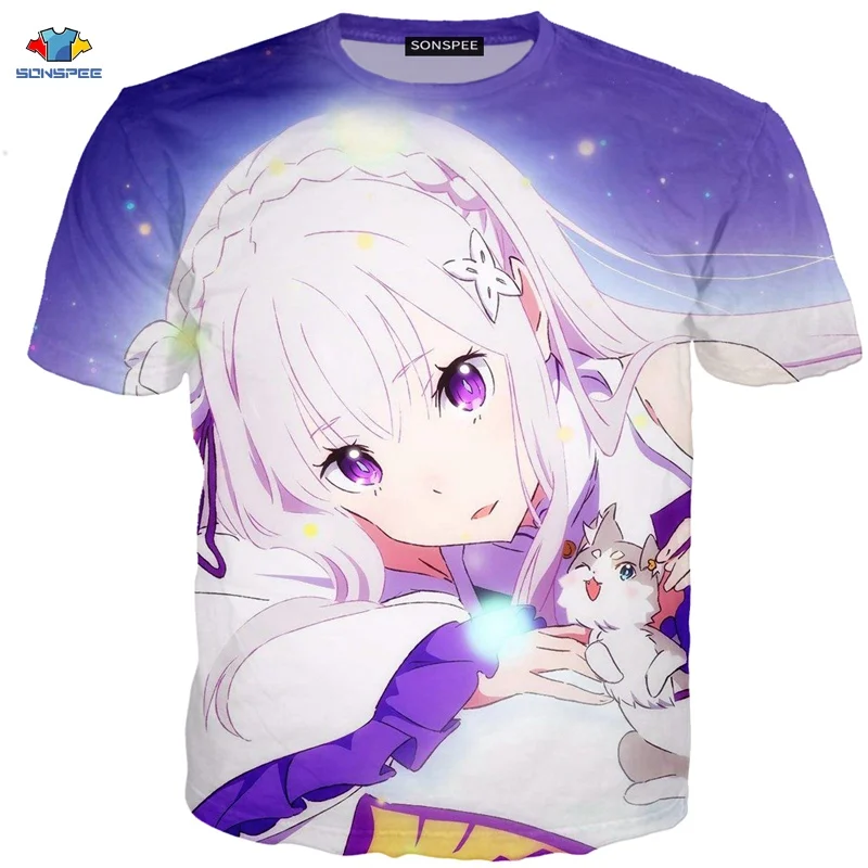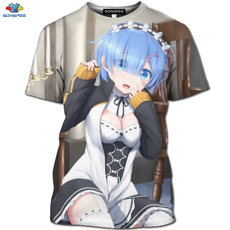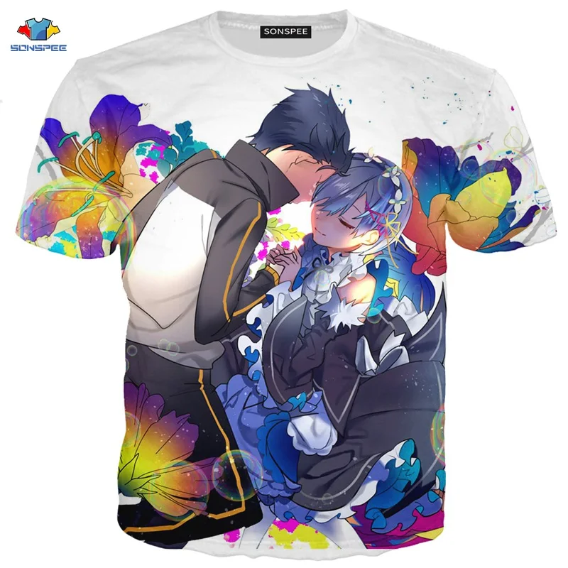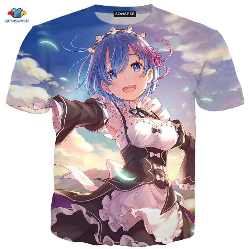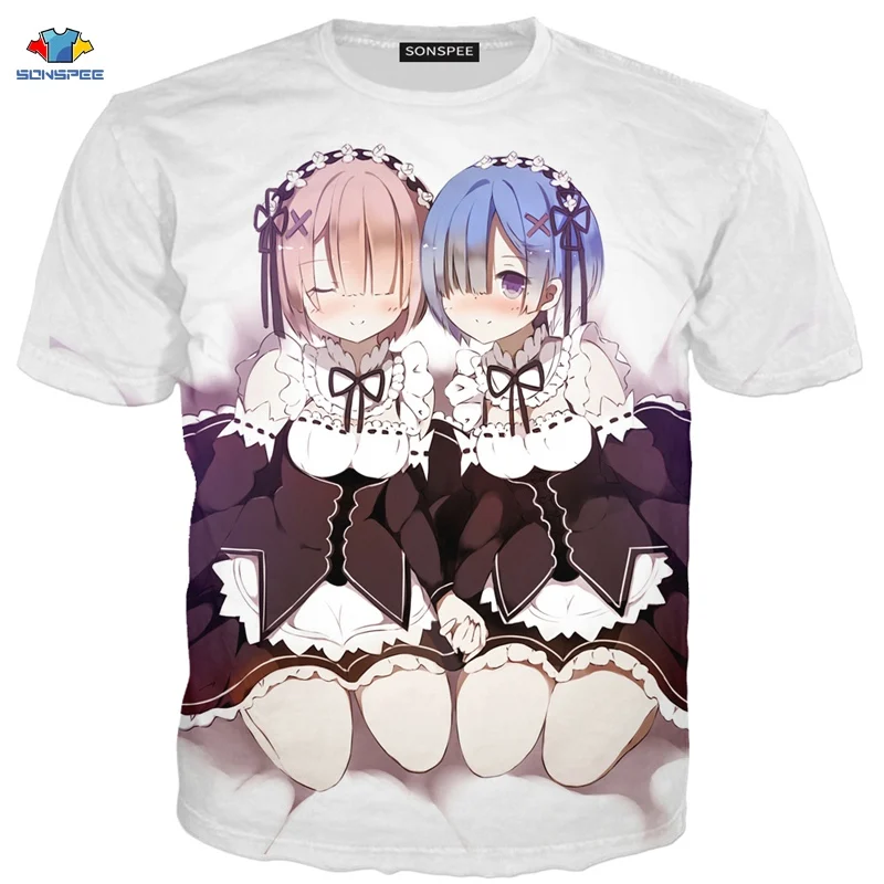 SONSPEE новая 3D футболка с коротким рукавом аниме Re:zero Twin Ram Rem для костюмированной вечеринки, футболка с изображением животных, собаки, лилии, костюм горничной, футболка, модная мужская рубашка