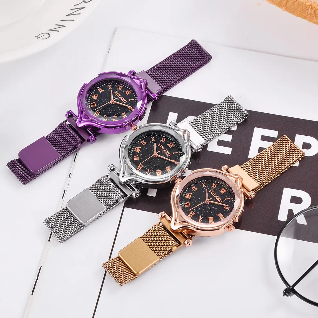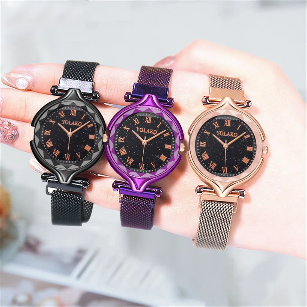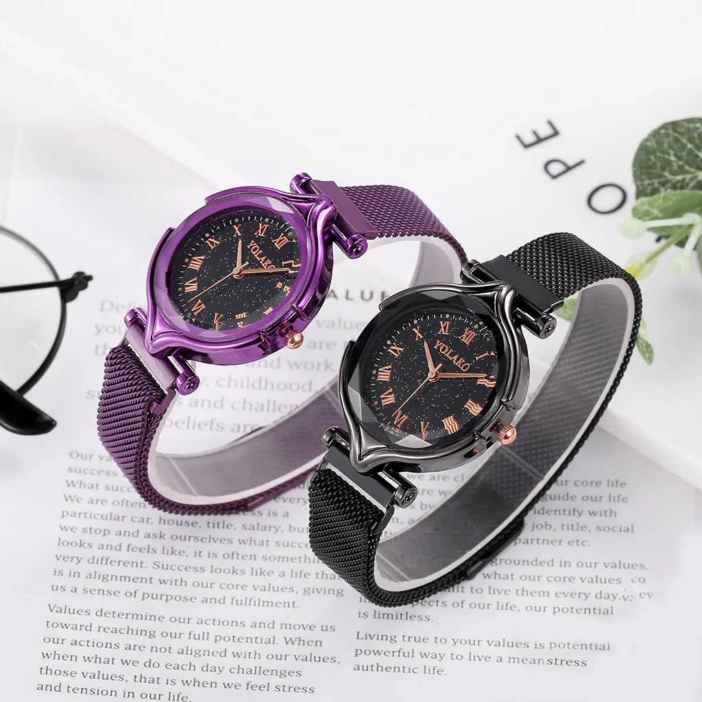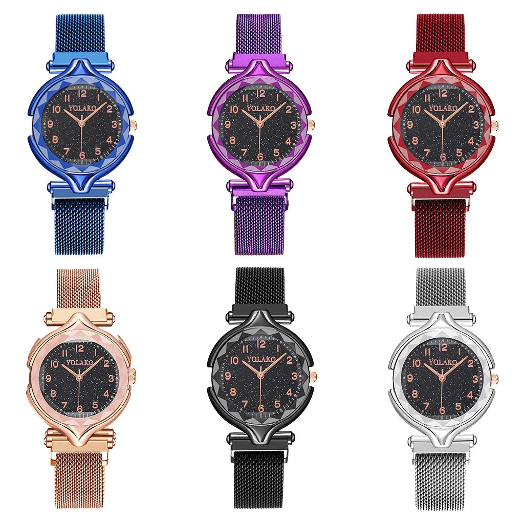 Женские зеркальные часы с магнитной пряжкой YOLAKO из нержавеющей стали