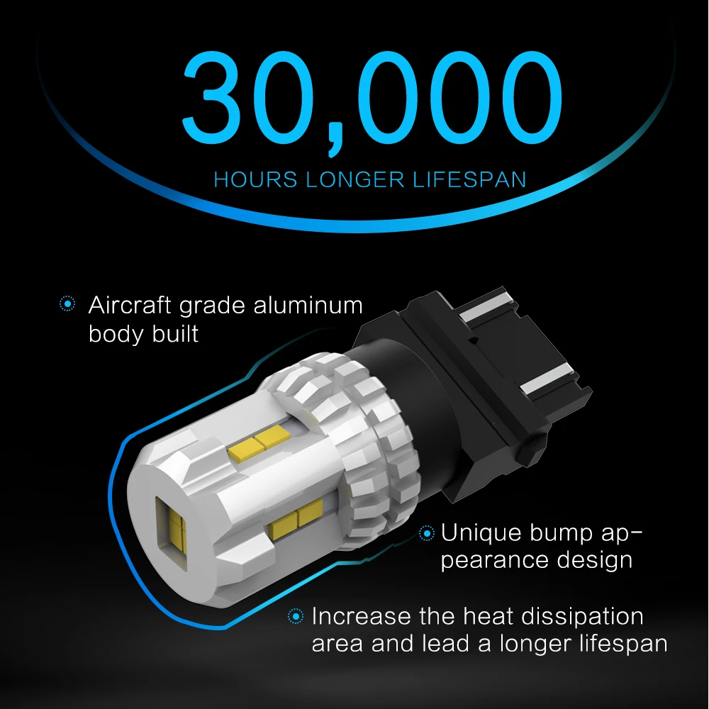 ● Желтый цвет 2200 к: для резервных огней, тормозных огней, задних фонарей, сигнальных огней поворота и ДХО ● 6000K белый: для резервных огней, задних огней, сигнальных огней поворота и DRL