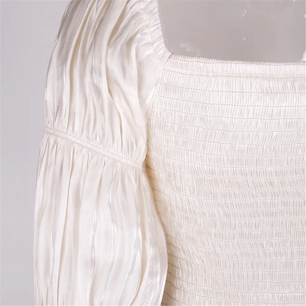 Сексуальная Женская атласная футболка с пышными рукавами, топы, осенние женские футболки с открытыми плечами, женская уличная блуза, женская футболка, Топ