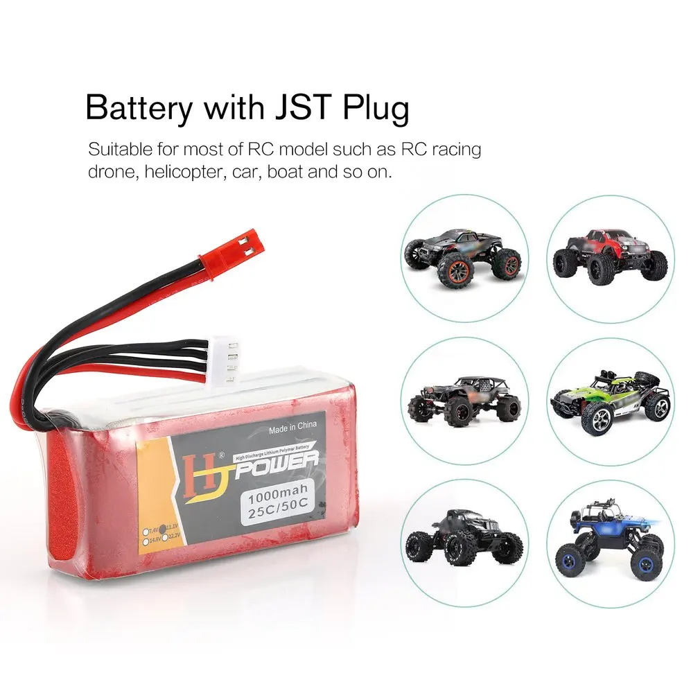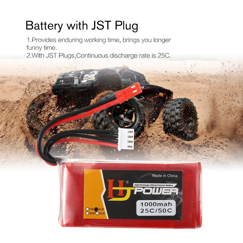 HJ 11,1Аккумуляторная батарея V 1000MAH 25C 3S, разъем JST для радиоуправляемого гоночного дрона, вертолета, автомобиля, модели лодки