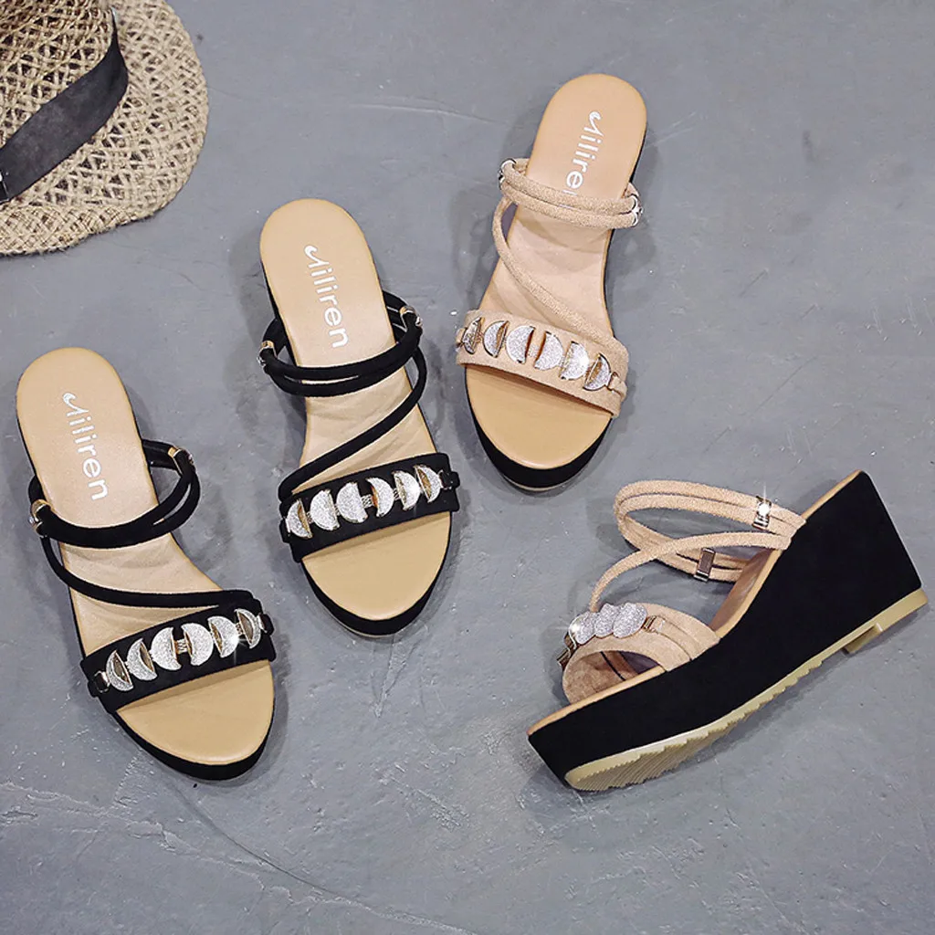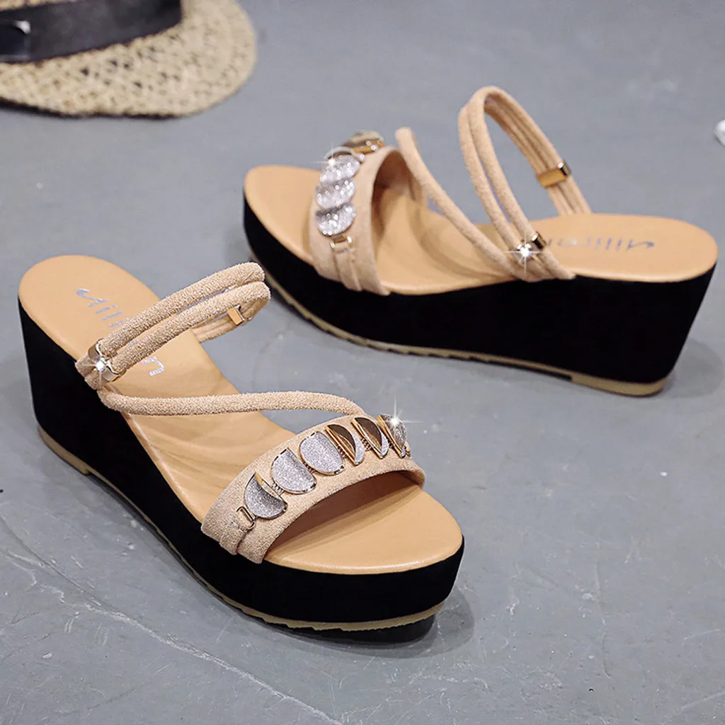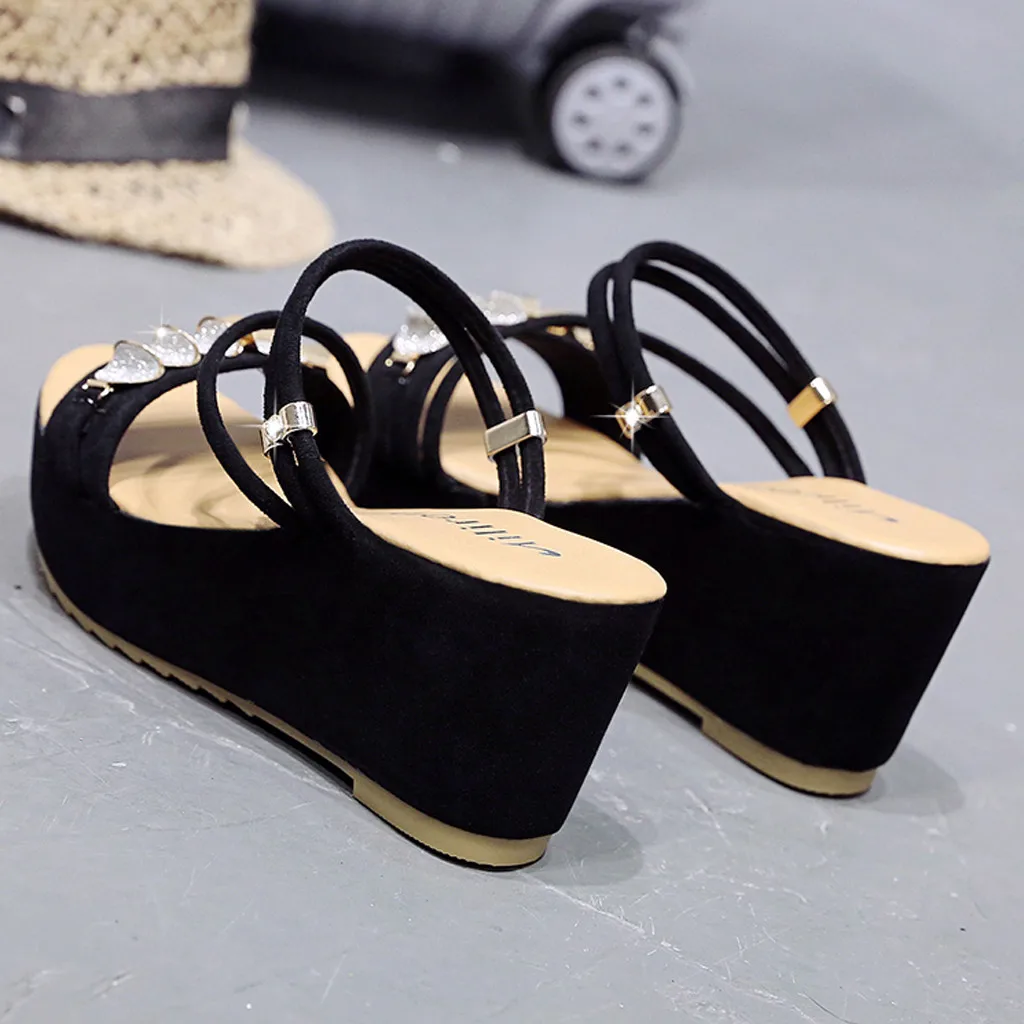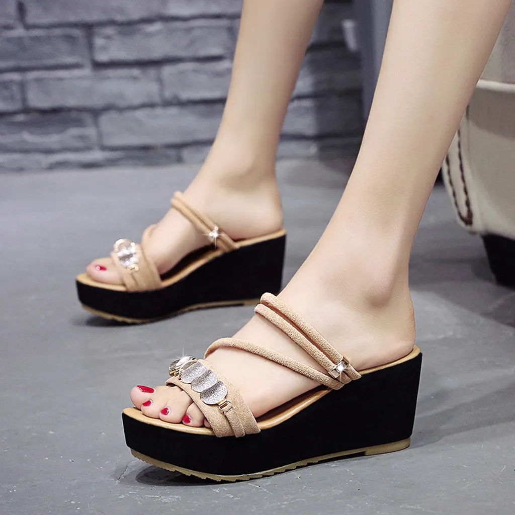 Женская обувь на танкетке со стразами; Повседневная обувь; Тапочки; Сандалии