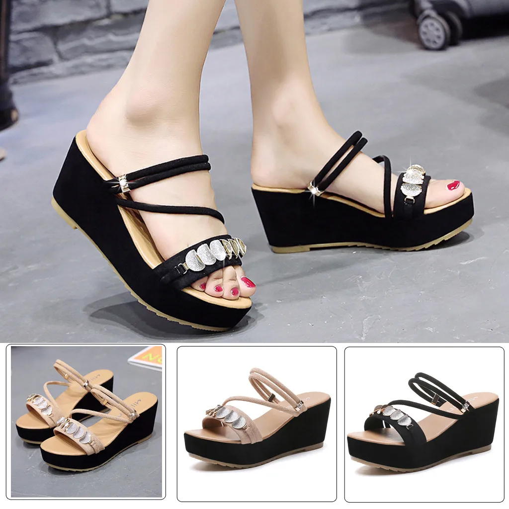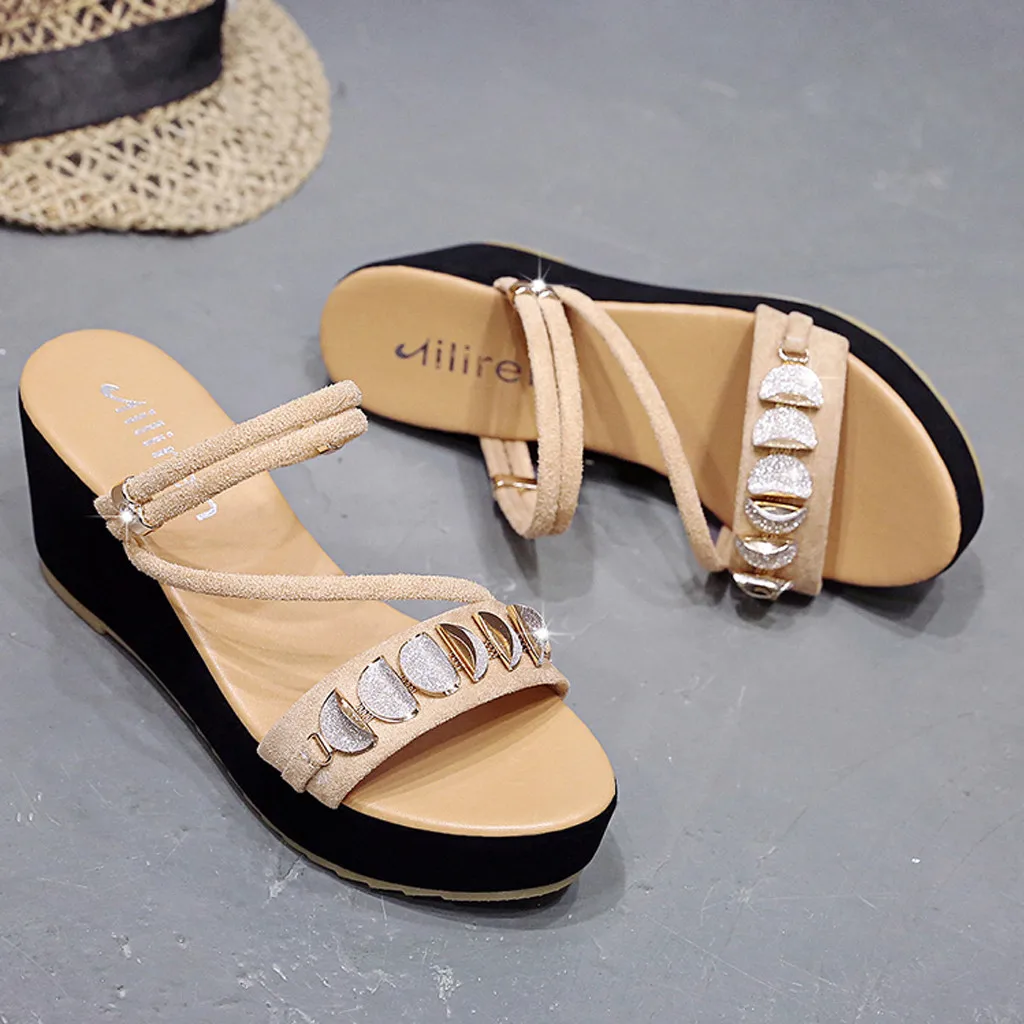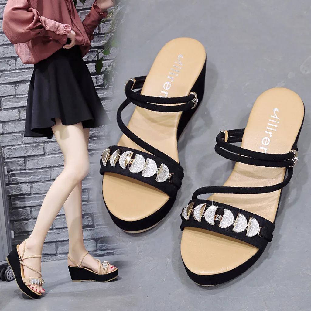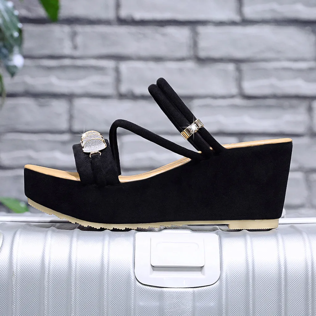 Женская обувь на танкетке со стразами; Повседневная обувь; Тапочки; Сандалии