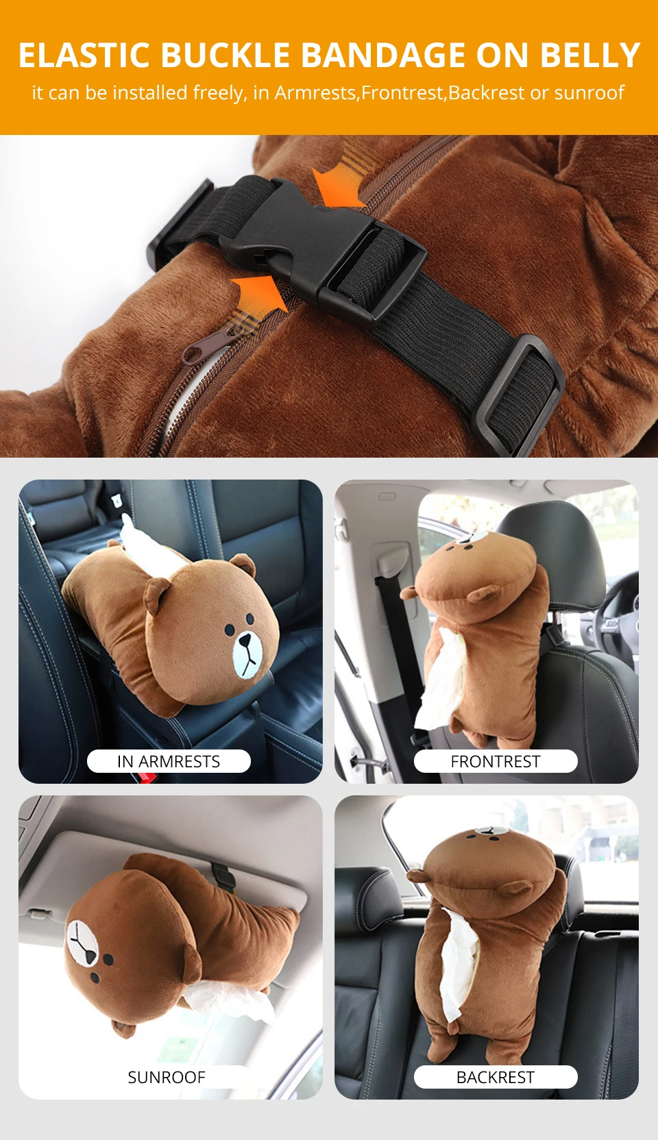 Plush Cute - This monkey tissue box can be used to hold a variety of paper towels, either hanging on the back of a car seat or lying flat on the center console of the car.Buckle