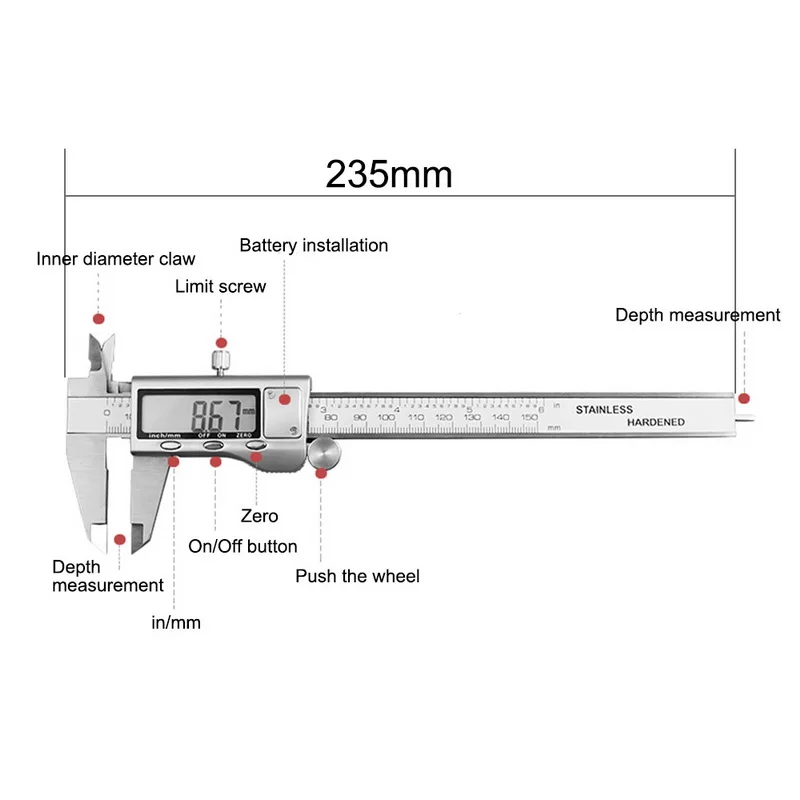 <Многофункциональный: отличный помощник для измерения внутренних и внешних размеров, диаметров, глубины.
