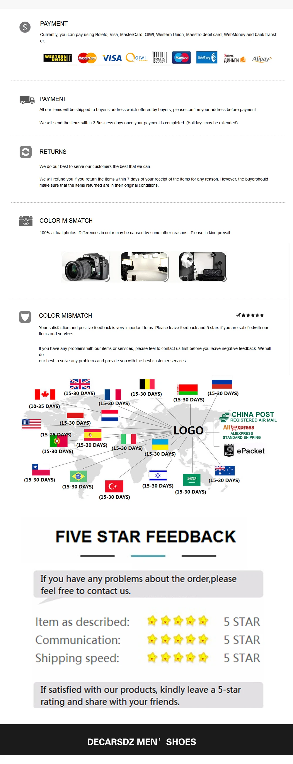 Мы принимаем оплату только по стандарту, поскольку длина ступни (см) соответствует размеру ступни.