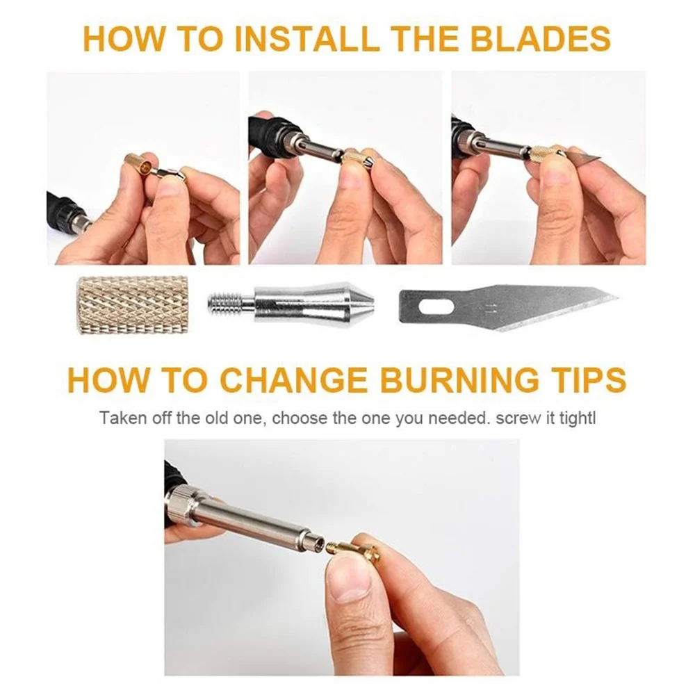 Подходит для сжигания древесины, пирографии, гравировки, резьбы, тиснения, надписи и украшения на дереве, меху, персиковой кости, пробке и коже.
