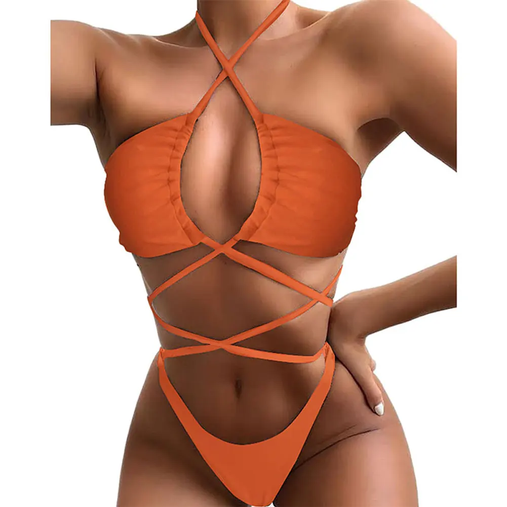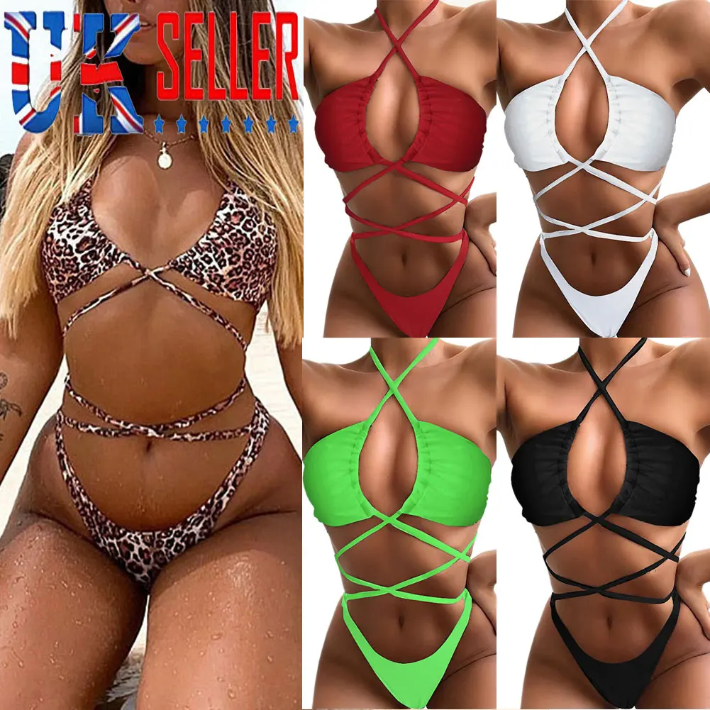 Женский раздельный купальник, сексуальное Бандажное Бразильское бикини стринги на шнуровке, купальный костюм, собранный из 2 предметов, комплект бикини, купальный костюм, купальный костюм, летняя пляжная одежда, идеально подходит для демонстрации вашего тела, сексуальный и стильный.