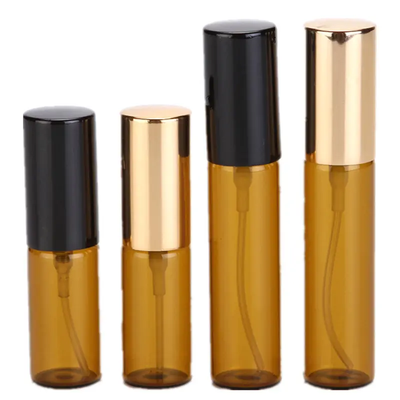 100 шт 5 мл 10 мл 10 мл мини Янтарная стеклянная бутылка спрей бутылка для парфюмерии с распылителем пустая парфюмерная образец алюминиевая крышка от бутылки Tralve бутылки флаконы
