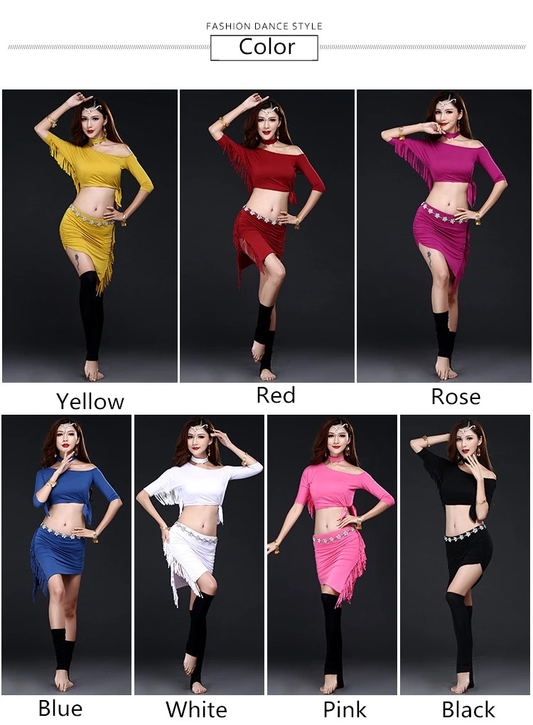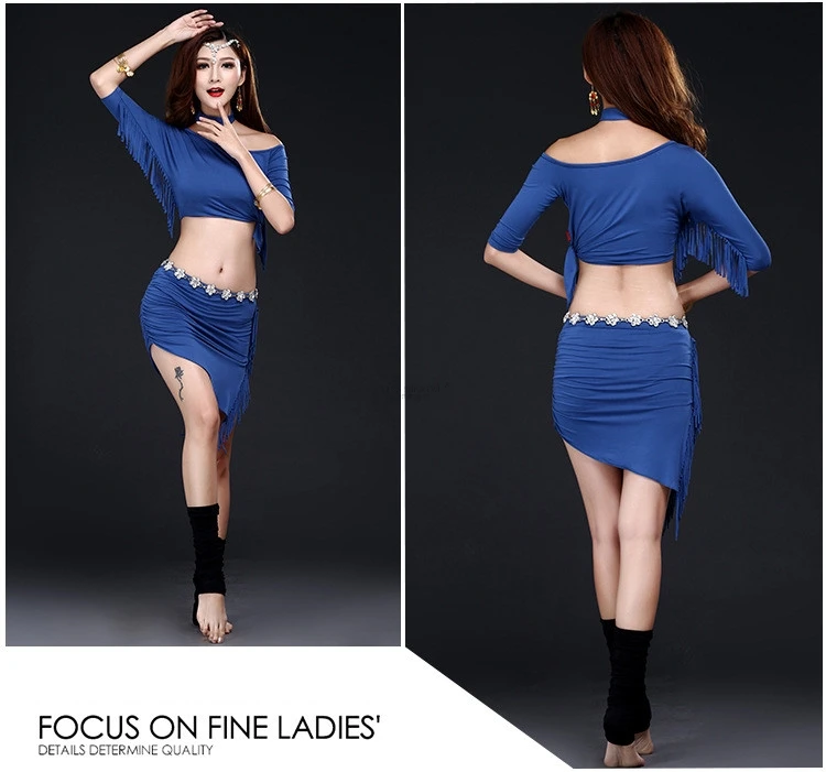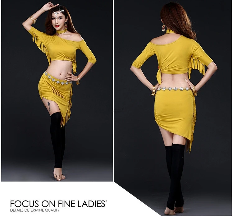 Костюм для танца живота, новый женский тренировочный костюм, топ + юбка, 2 предмета, сексуальное платье с коротким рукавом для танца живота, комплект одежды для выступлений, Новинка