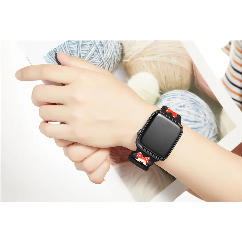 40/44 мм ремешок для Apple Watch band 4, милый сменный Браслет с мультяшным Микки, спортивный браслет для iWatch 38/42 мм 3/2/1, аксессуары
