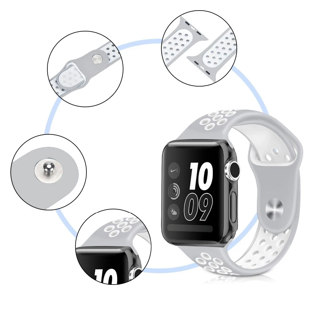 Спортивный силиконовый ремешок для наручных часов Apple watch 5 4 44 мм 40 мм дышащая браслет ремешок для Nike + наручных часов Iwatch серии 3/2/1, 42 мм, 38 мм, correa, аксессуары для часов Apple