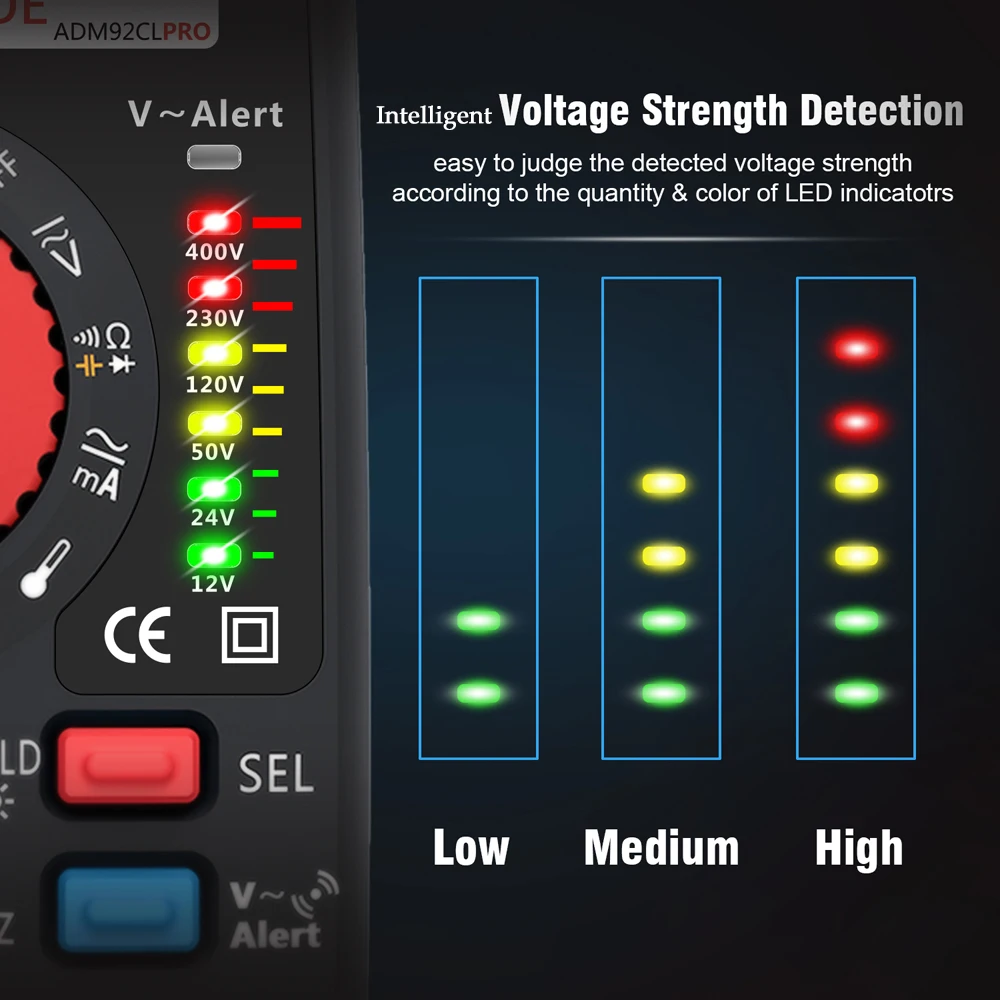 Модернизированный дизайн: Модернизированный мультиметр-теперь более мощный, его можно использовать как мультиметр или как детектор напряжения. 6 светодиодный индикатор позволяет легко оценить прочность обнаруженного напряжения.