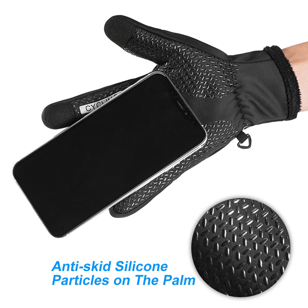 Наши велосипедные перчатки с водоотталкивающей наружной тканью и флисовой подкладкой гарантируют вашим ручкам тепло и комфорт в холодную зиму. С помощью сенсорных пальцев вы можете свободно пользоваться смартфоном и устройствами с сенсорным экраном, даже не снимая перчатки. Силиконовые частицы на ладони являются противоскользящими и амортизирующими, что дает вам прекрасный опыт езды на велосипеде или занятий спортом.